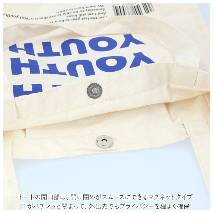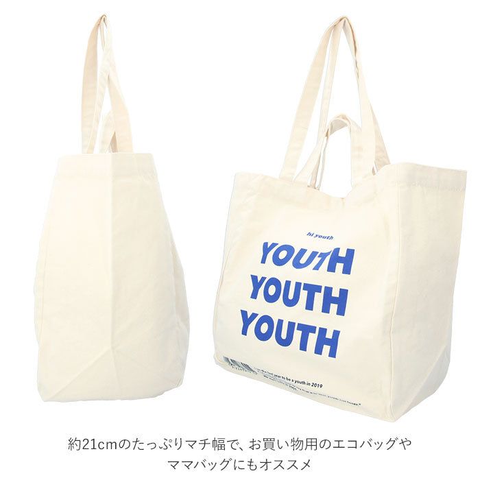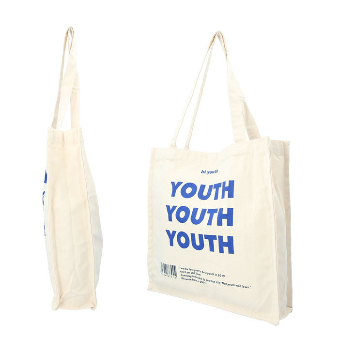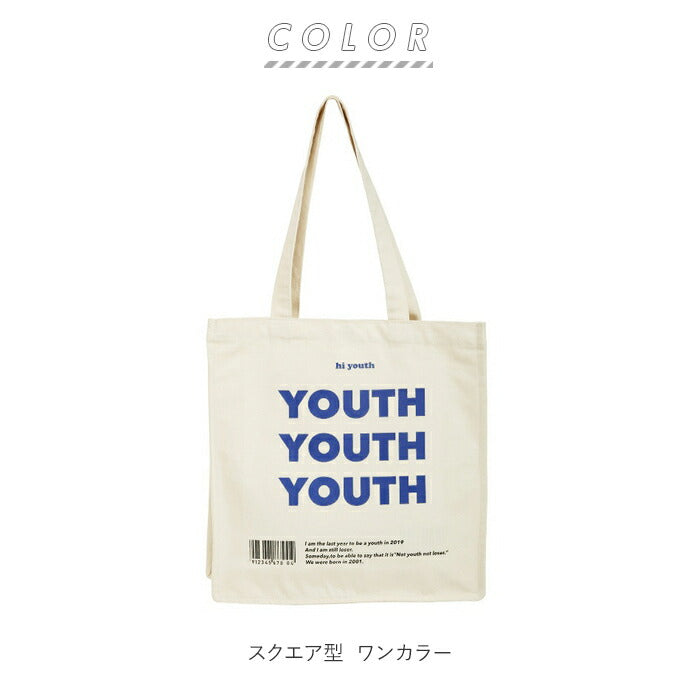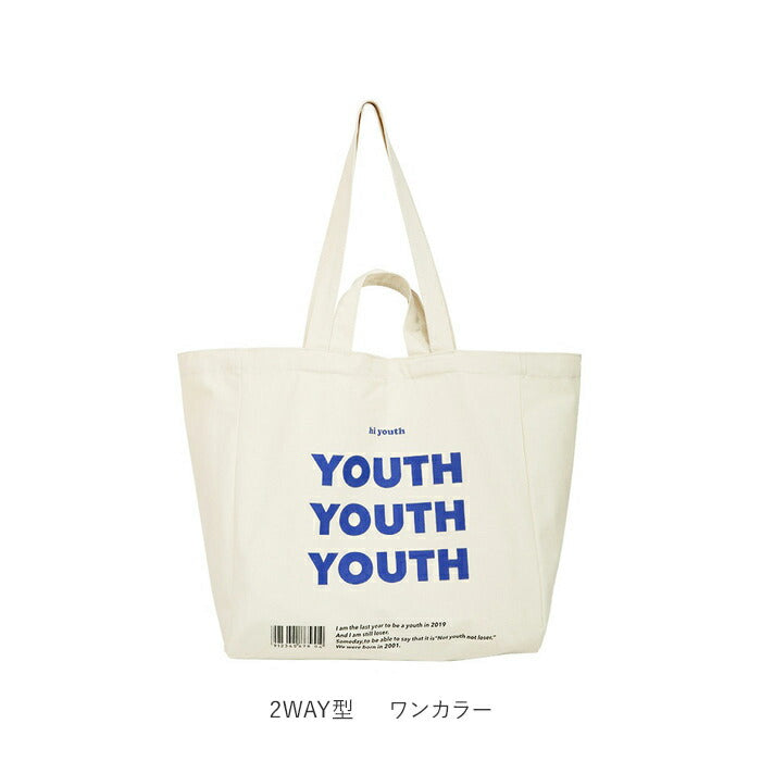・アイボリーカラーのキャンバス地に、「YOUTH!YOUTH!YOUTH!」のロゴが映えるエバーグリーンなデザインも魅力。