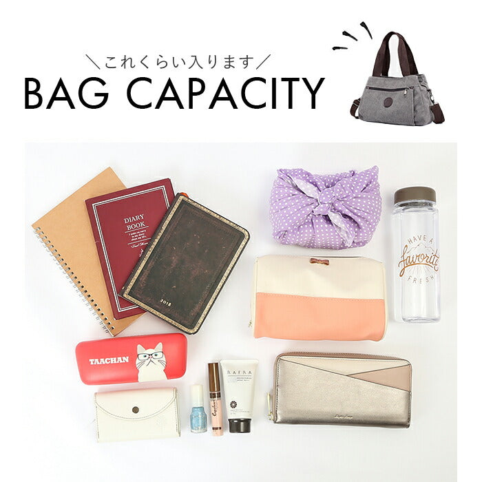 ・毎日使いにちょうどよい、収納力。しっかりマチがあるので、ミニボトル、長財布、折りたたみ傘、お弁当、ポーチなどサクサク収納できる。