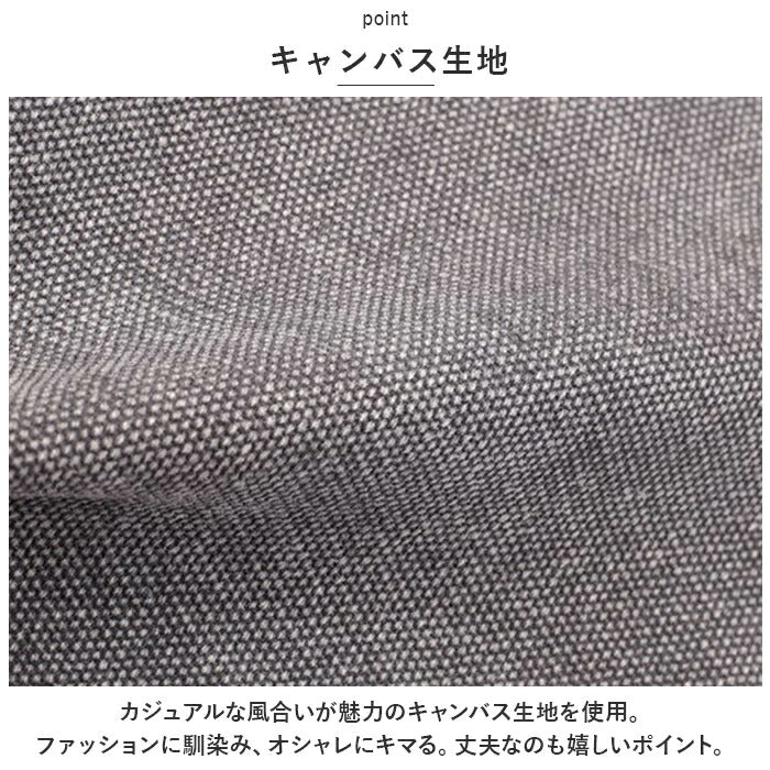 ・カジュアルな風合いが魅力のキャンバス生地を使用。ファッションに馴染み、オシャレにキマる。丈夫なのも嬉しいポイント。