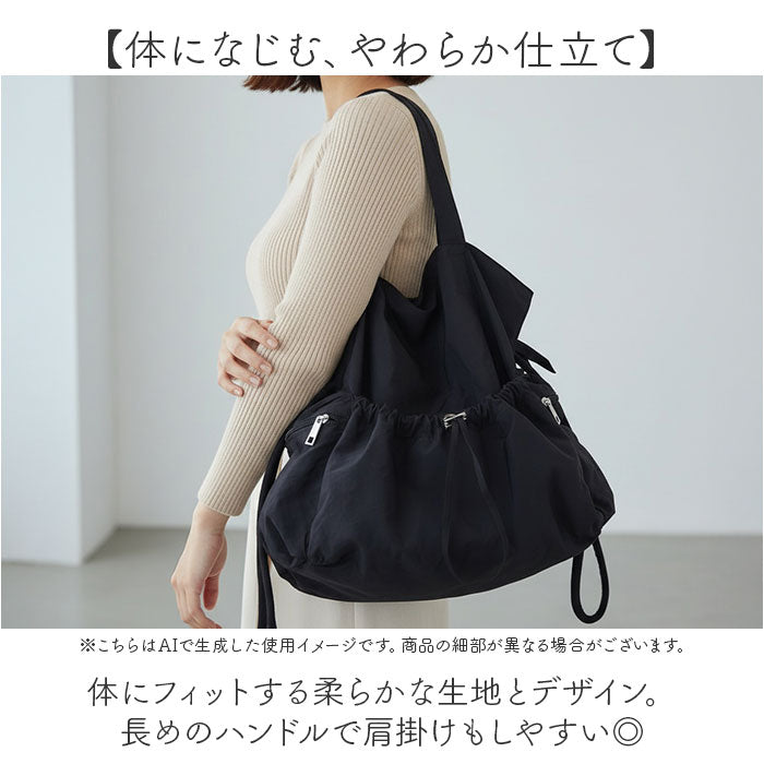 ・体にフィットする柔らかな生地とデザイン。長めのハンドルで肩掛けもしやすい◎