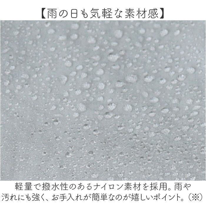 ・軽量で撥水性のあるナイロン素材を採用。雨や汚れにも強く、お手入れが簡単なのが嬉しいポイント。