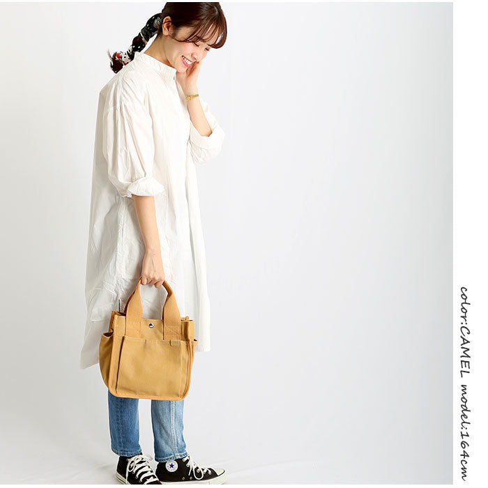 ・シンプルなデザインとナチュラルなキャンバス生地で様々なコーデに合わせやすく、季節問わず使えるのもポイント◎
