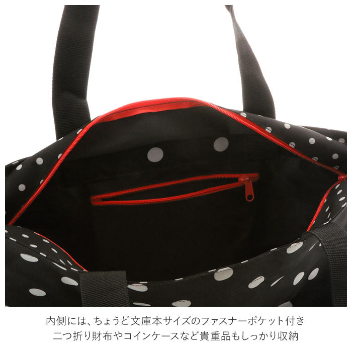 ・内側には、ちょうど文庫本サイズのファスナーポケット付き。二つ折り財布やコインケースなど貴重品もしっかり収納。