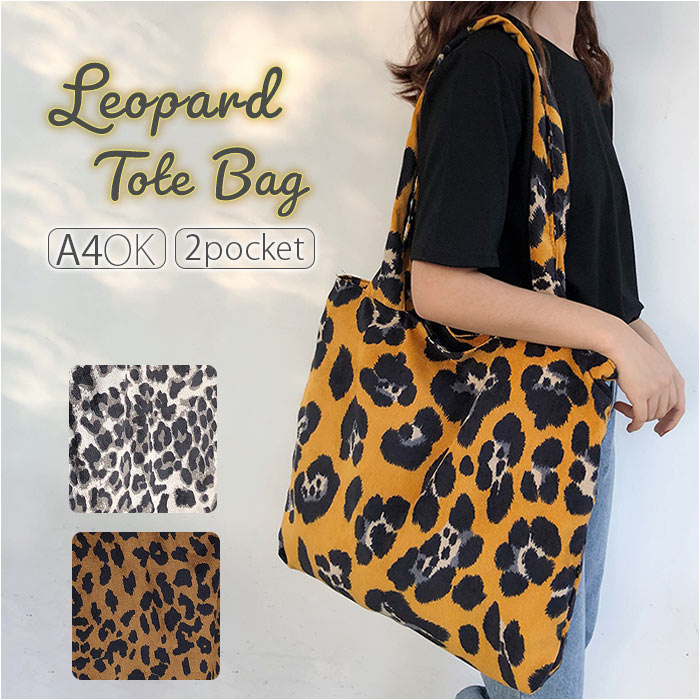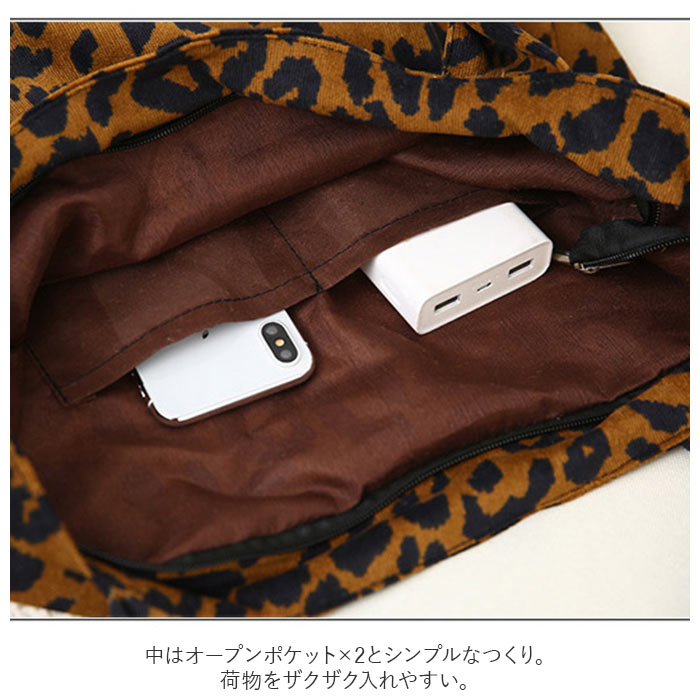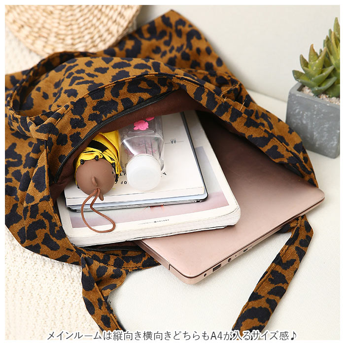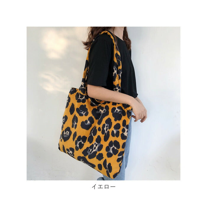 トートバッグ レディース 大きめ 通販 ショルダーバッグ ショルダー 肩掛け ヒョウ柄 柔らかい ファスナー付き 大容量 コーデュロイ レオパード シンプル バッグ 鞄 おしゃれ 旅行