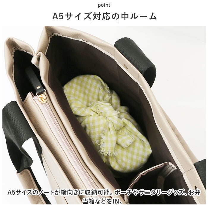 ・シンプルなデザインに大人感をプラス。LIZDAYSから、たっぷり収納できて整理整頓がラクラク!「3仕切りPUビッグトート」が新登場。