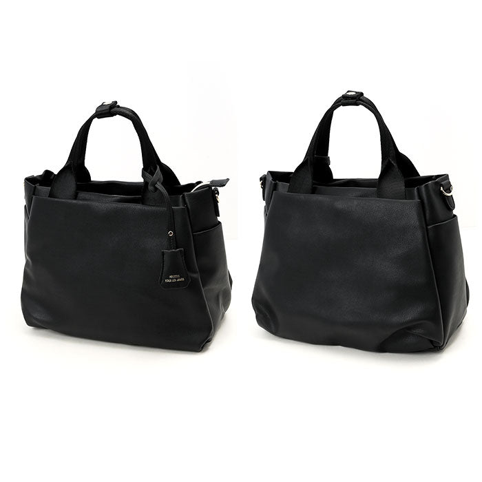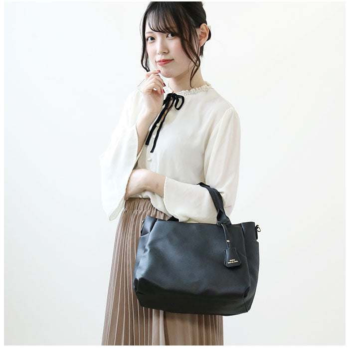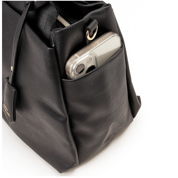 ・手持ちのハンドバッグとしてはもちろん、長さ調節可能なショルダーベルトを取り付けて、肩掛けや斜め掛けもOK!短いハンドルをまとめるスナップボタンベルト付き。