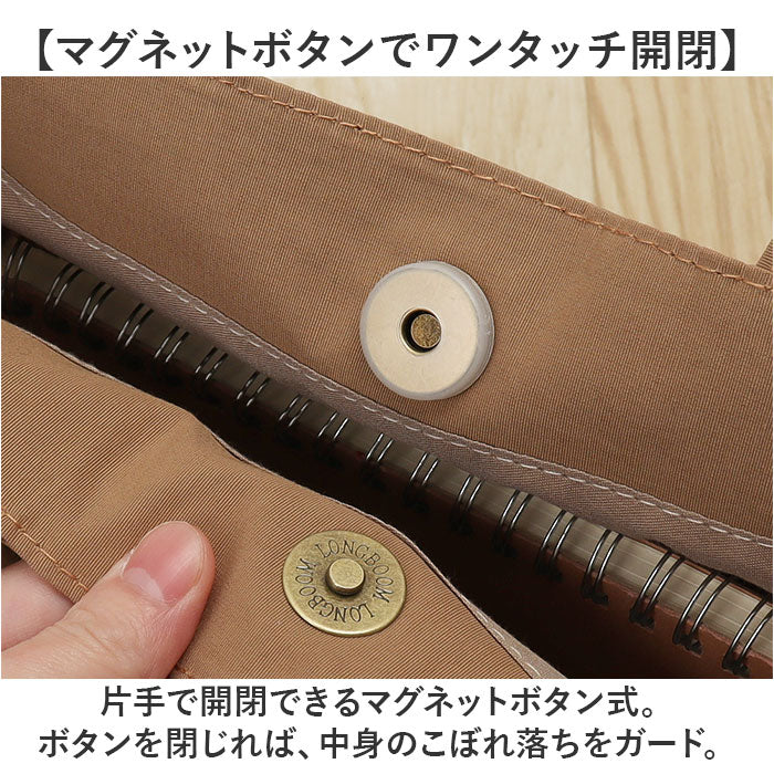 ・片手で開閉できるマグネットボタン式。ボタンを閉じれば、中身のこぼれ落ちをガード。