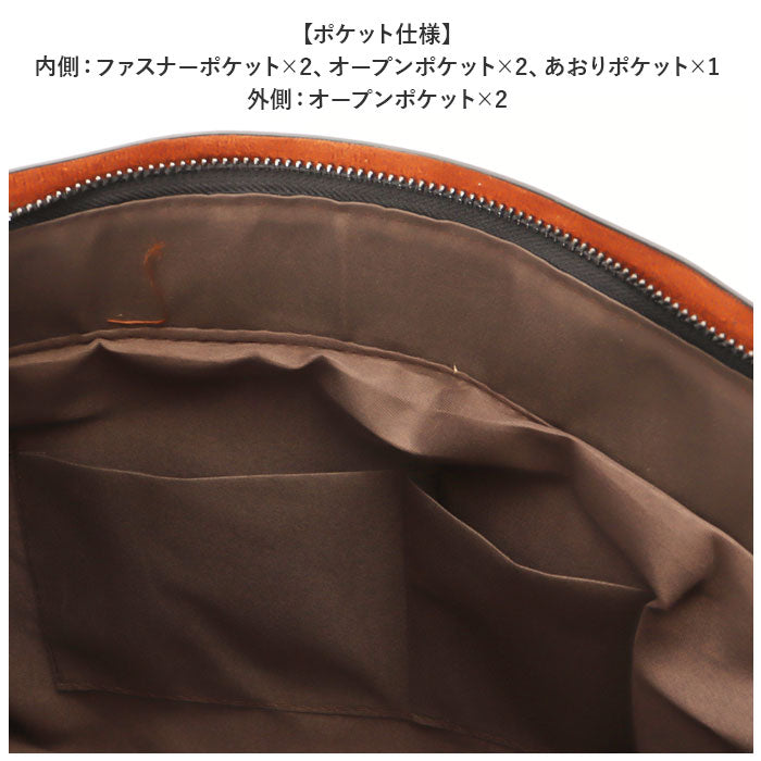 ・内側:ファスナーポケット×2、オープンポケット×2、あおりポケット×1