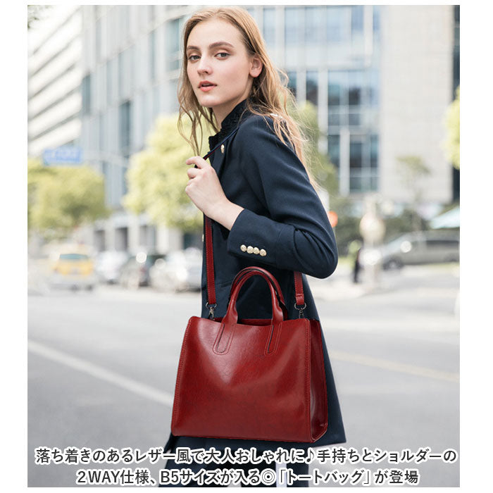 ・B5サイズが入る◎手持ちとショルダーの2WAY仕様、落ち着きのあるレザー風で大人おしゃれに♪「トートバッグ」が登場
