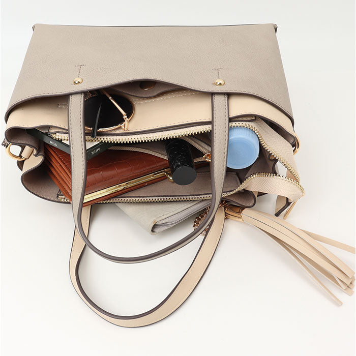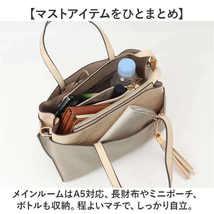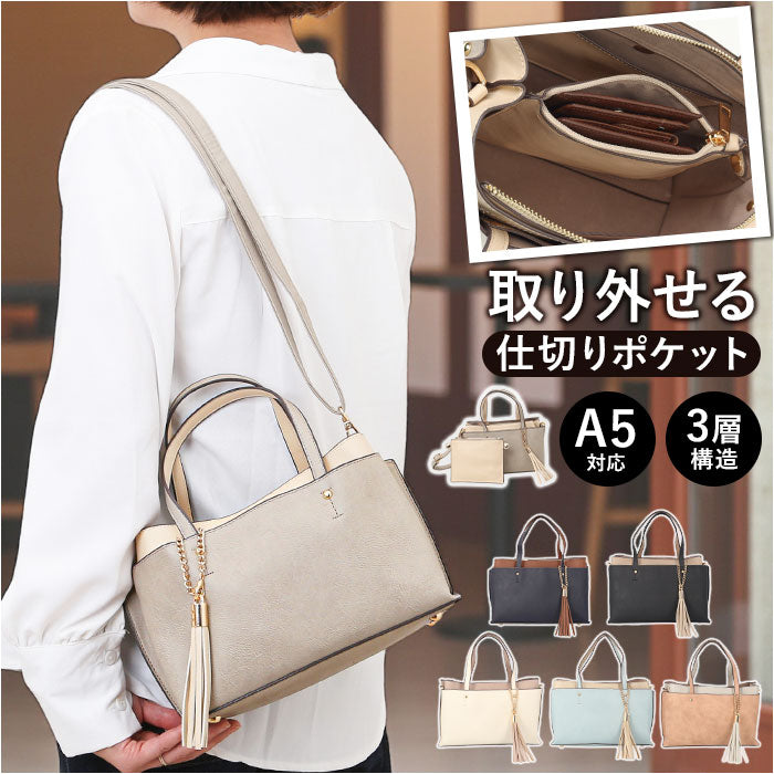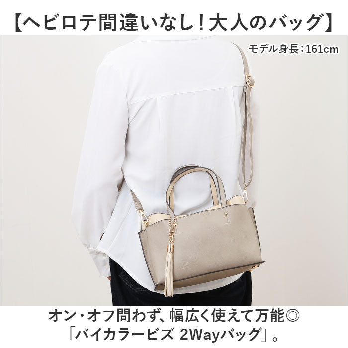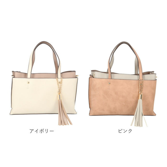 トートバッグ レディース 通販 ショルダーバッグ 2WAY 手提げバッグ バイカラーバッグ ツートンバッグ 斜めがけバッグ 肩掛け タッセルチャーム 長さ調節可能 バッグ かばん おしゃれ