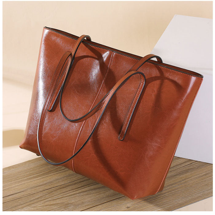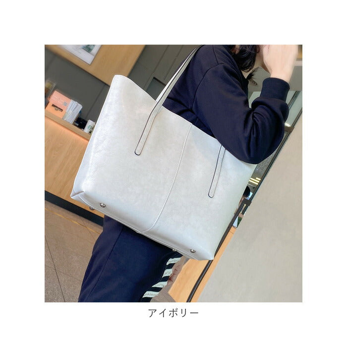 ・程よい光沢感が上品さをプラスした本格的なトートバッグ。