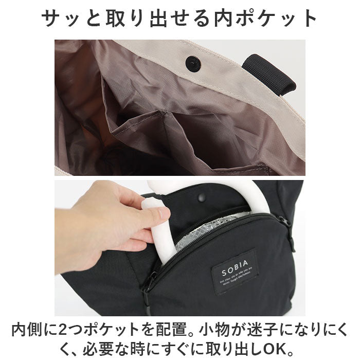 ・内側に2つポケットを配置。小物が迷子になりにくく、必要な時にすぐに取り出しOK。