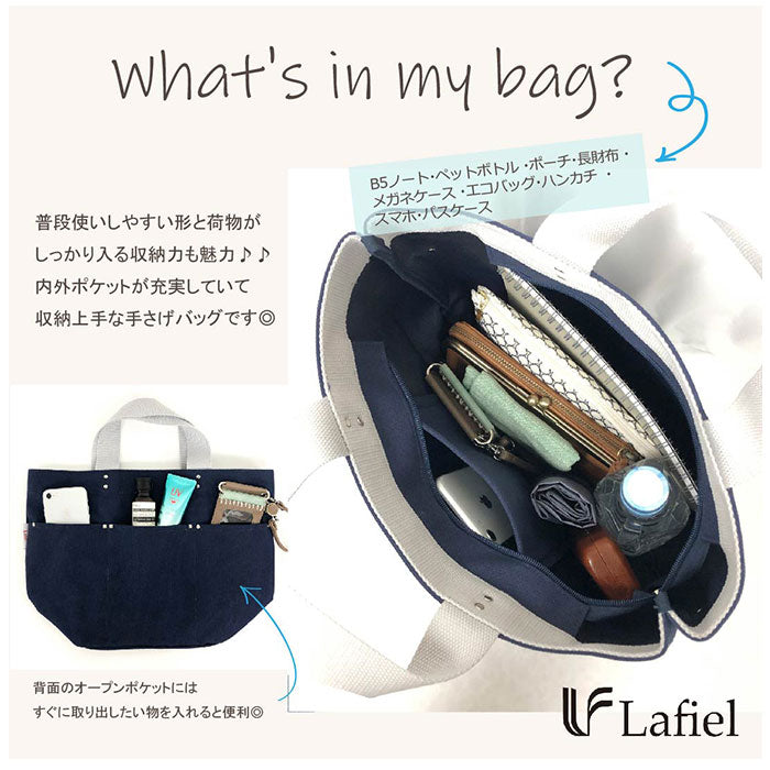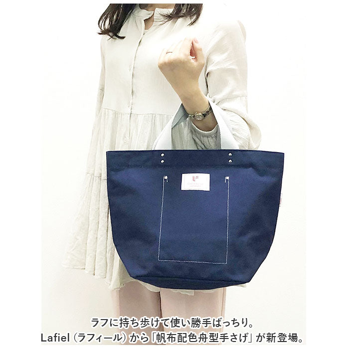 ・ラフに持ち歩けて使い勝手ばっちり。Lafiel(ラフィール)から「帆布配色舟型手さげ」が新登場。