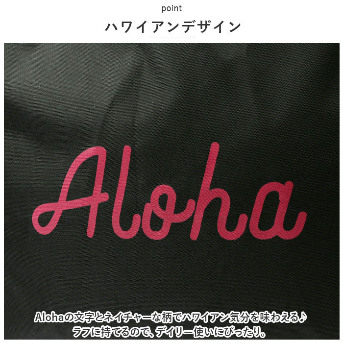 ・Alohaの文字とネイチャーな柄でハワイアン気分を味わえる♪ラフに持てるので、デイリー使いにぴったり。