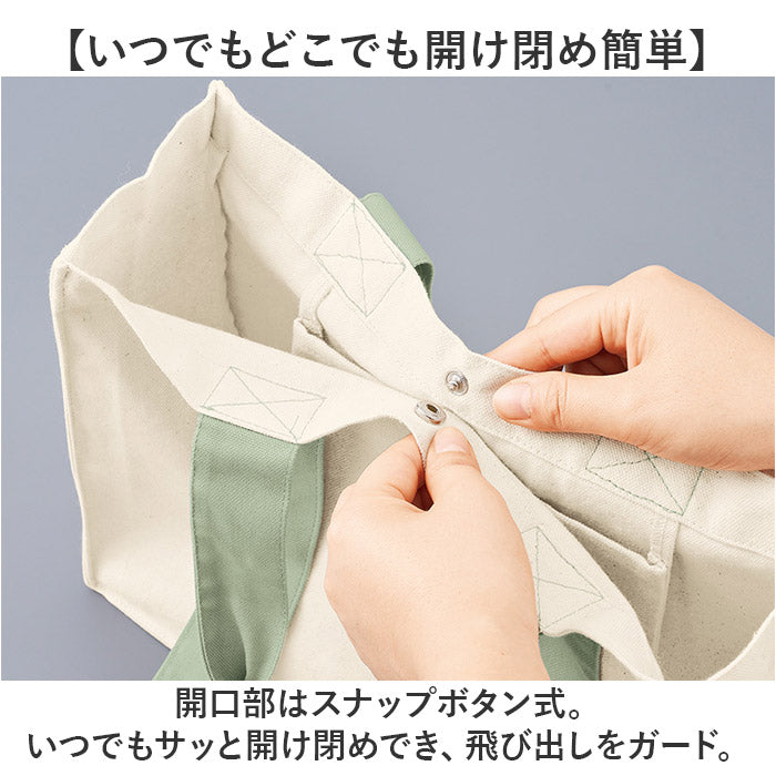 ・開口部はスナップボタン式。いつでもサッと開け閉めでき、飛び出しをガード。