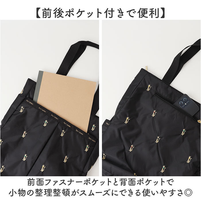 刺繍ファスナートートバッグ