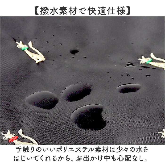 【撥水素材で快適仕様】手触りのいいポリエステル素材は少々の水をはじいてくれるから、お出かけ中も心配なし。