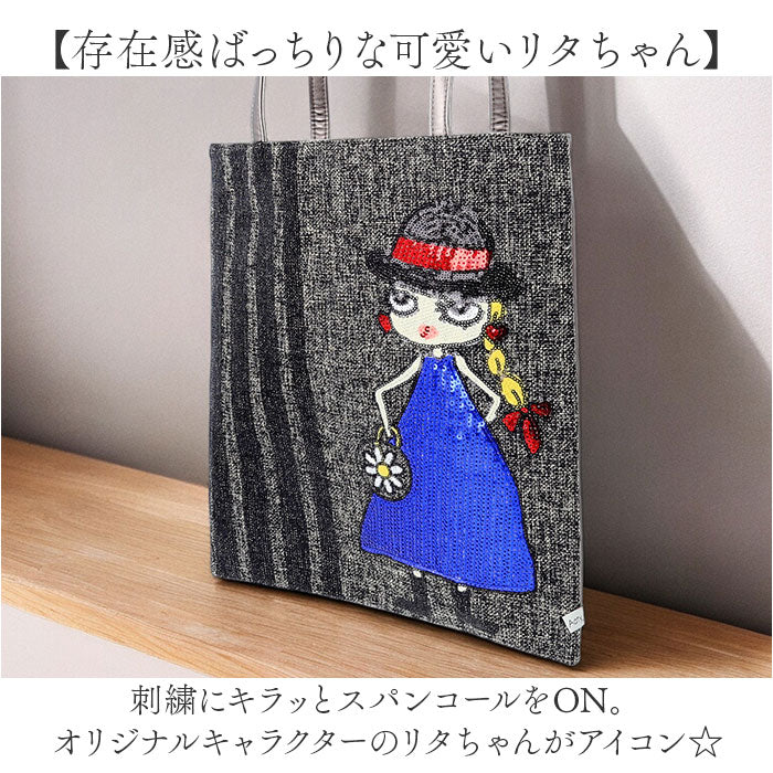 ・刺繍にキラッとスパンコールをON。オリジナルキャラクターのリタちゃんがアイコン☆