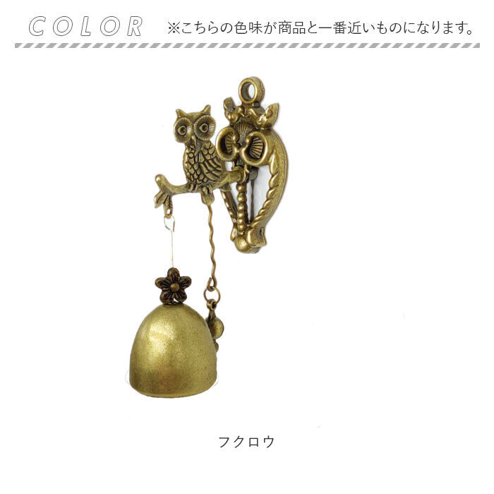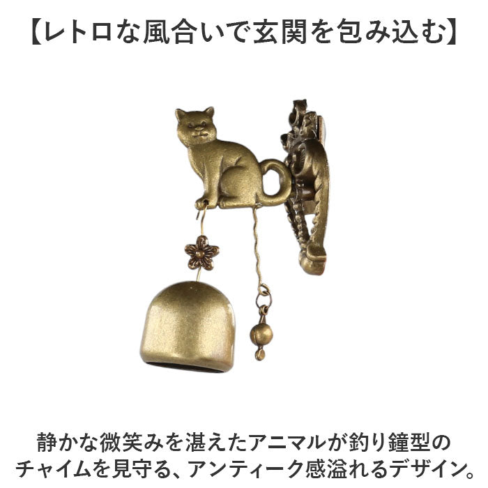 ・静かな微笑みを湛えたアニマルが釣り鐘型のチャイムを見守る、アンティーク感溢れるデザイン。