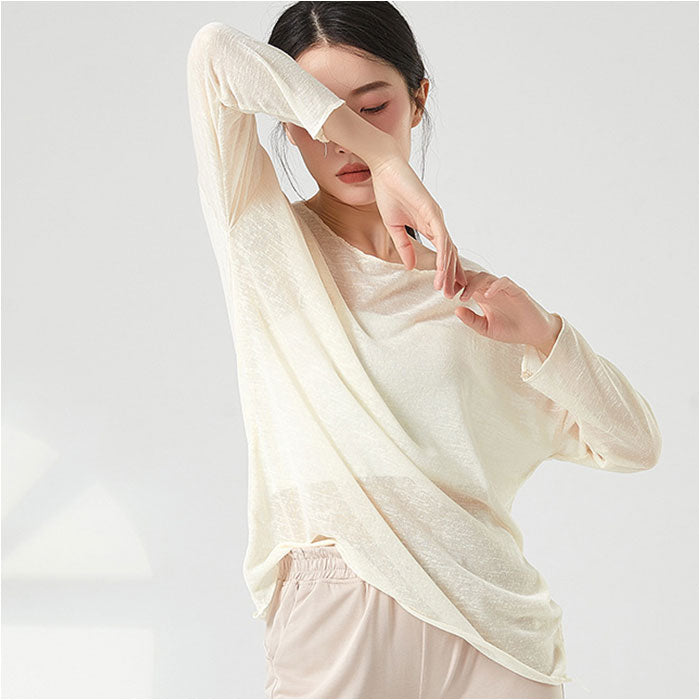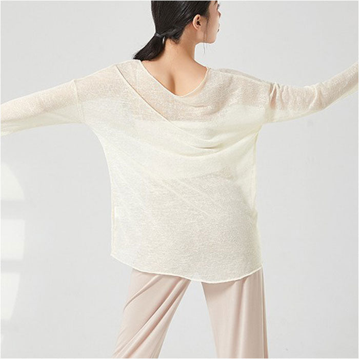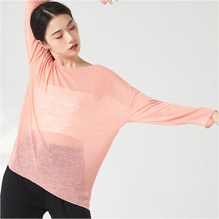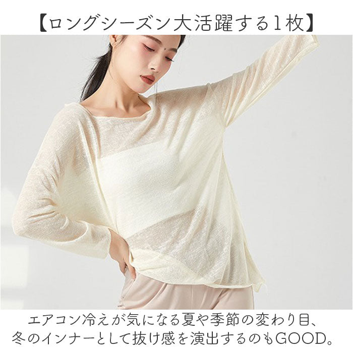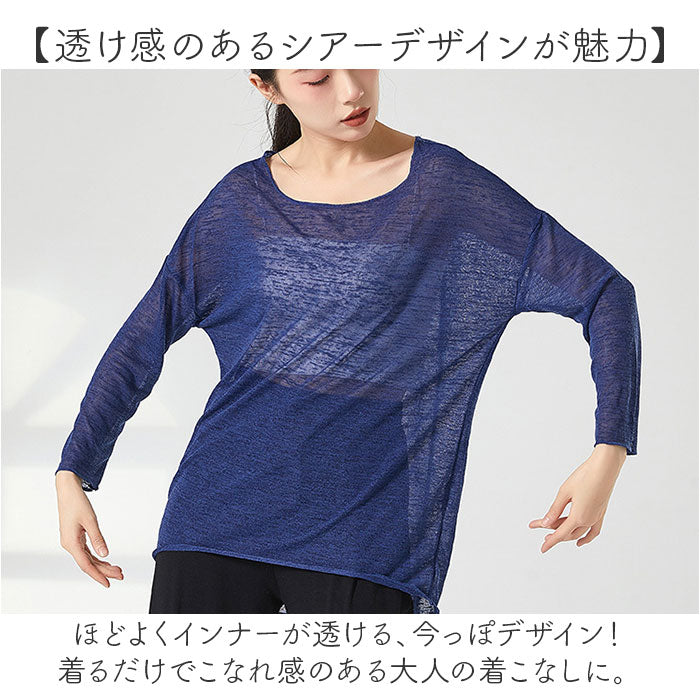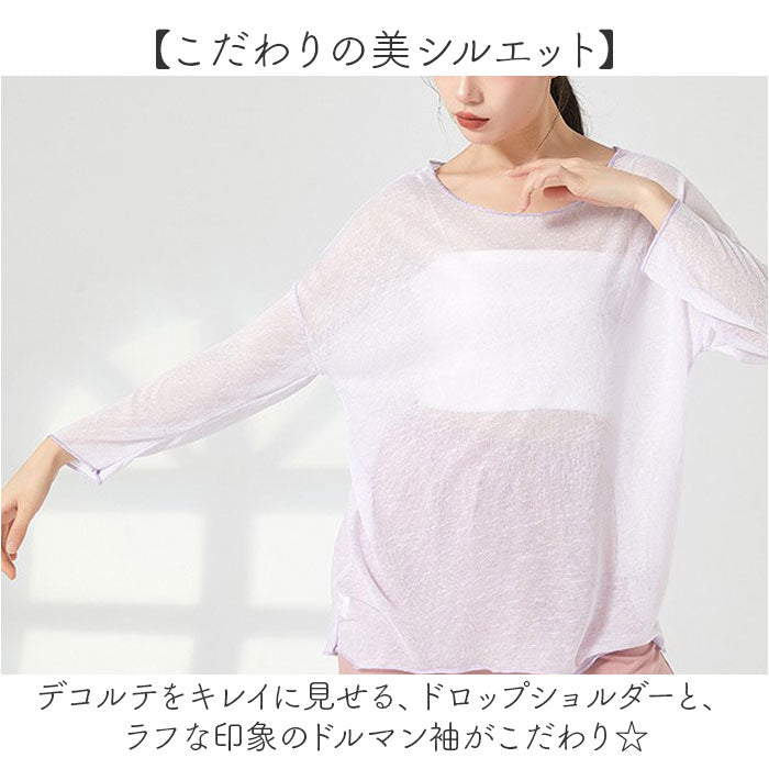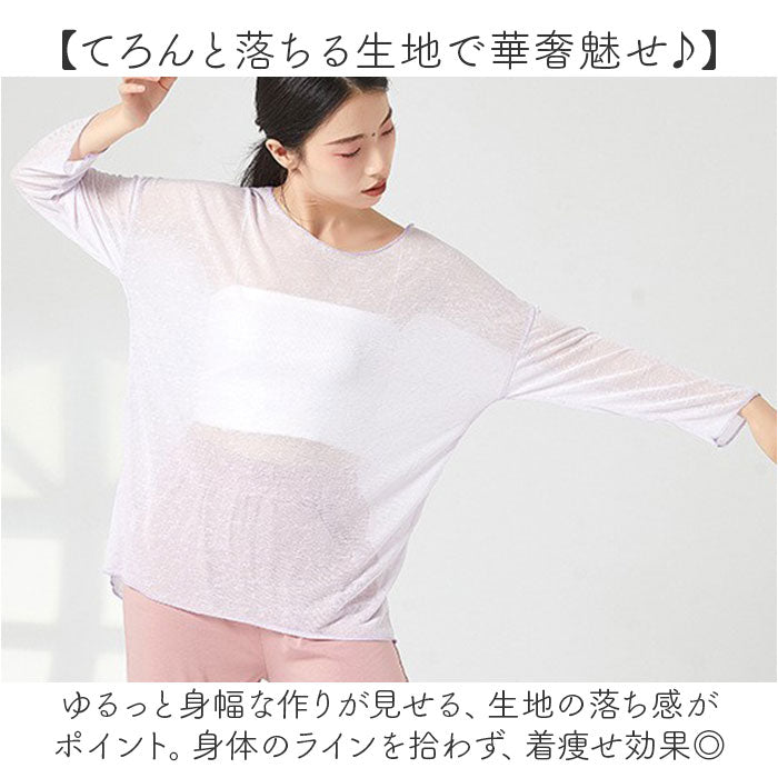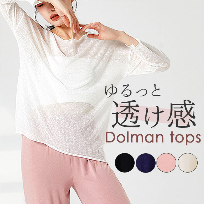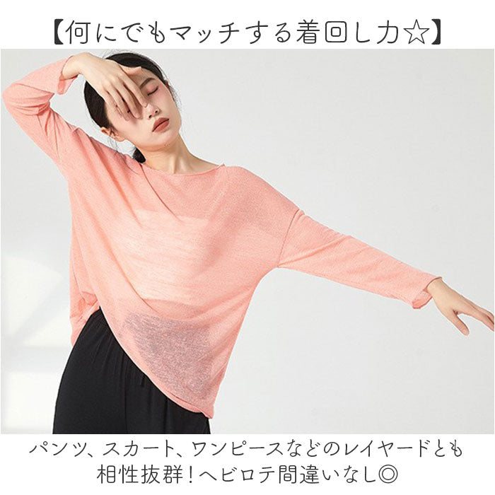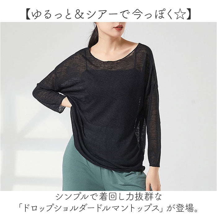 ドロップショルダー ドルマン トップス 長袖 通販 カットソー レッスン着 羽織り 羽織 レイヤード 重ね着 ドルマンスリーブ シースルー シアー 薄手 薄い ゆったり かわいい レッスン