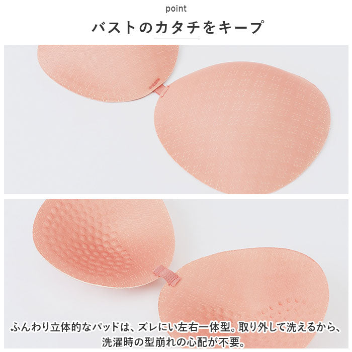 ・ふんわり立体的なパッドは、ズレにい左右一体型。取り外して洗えるから、洗濯時の型崩れの心配が不要。