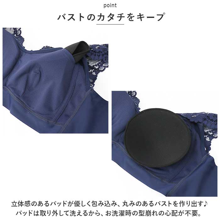 ・立体感のあるパッドが優しく包み込み、丸みのあるバストを作り出す♪パッドは取り外して洗えるから、お洗濯時の型崩れの心配が不要。
