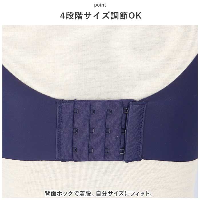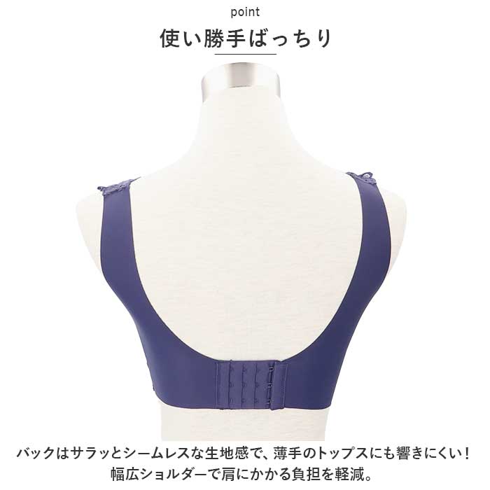 ・バックはサラッとシームレスな生地感で、薄手のトップスにも響きにくい!幅広ショルダーで肩にかかる負担を軽減。