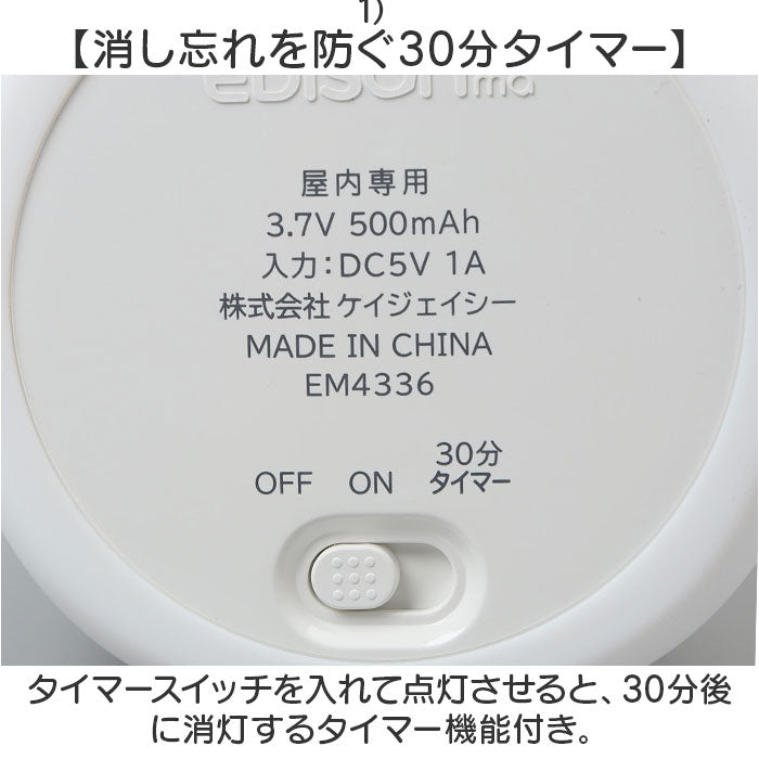 ・タイマースイッチを入れて点灯させると、30分後に消灯するタイマー機能付き。