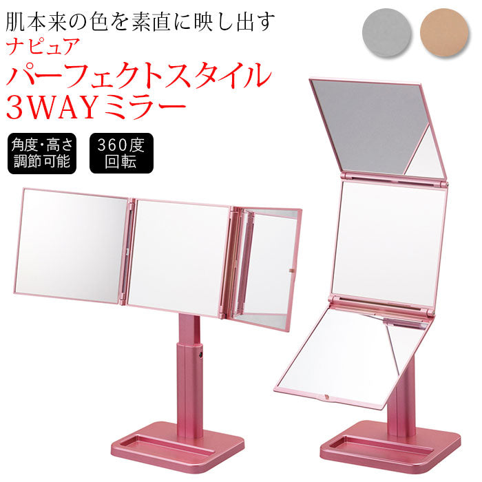 ナピュアミラー 三面鏡 通販 卓上ミラー スタンドミラー ミラー 卓上 三面鏡 卓上 コンパクトミラー 折立ミラー 鏡 かがみ 卓上鏡 プロ仕様 メイク 角度調整 折りたたみ 堀内鏡工業 NA-56 特許