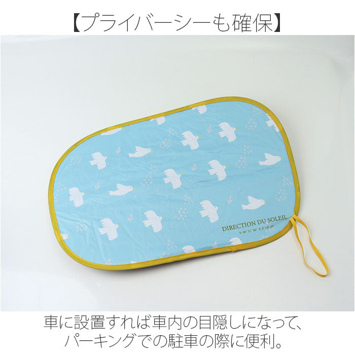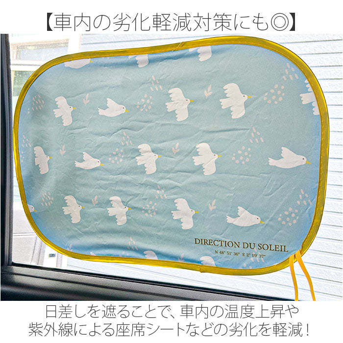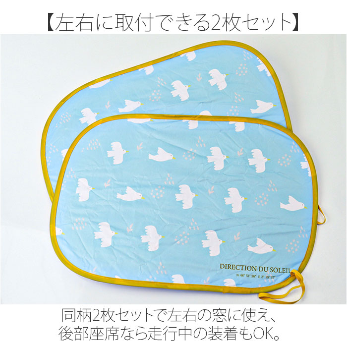 ・同柄2枚セットで左右の窓に使え、後部座席なら走行中の装着もOK。