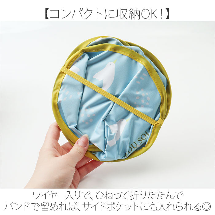 ・ワイヤー入りで、ひねって折りたたんでバンドで留めれば、サイドポケットにも入れられる◎