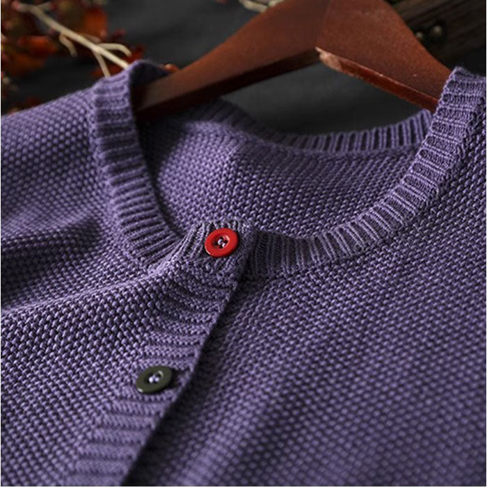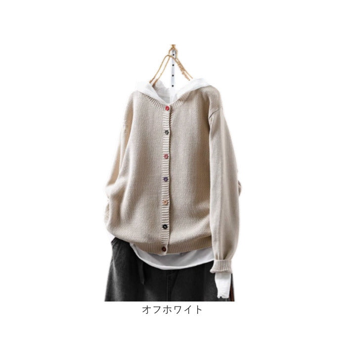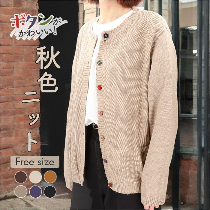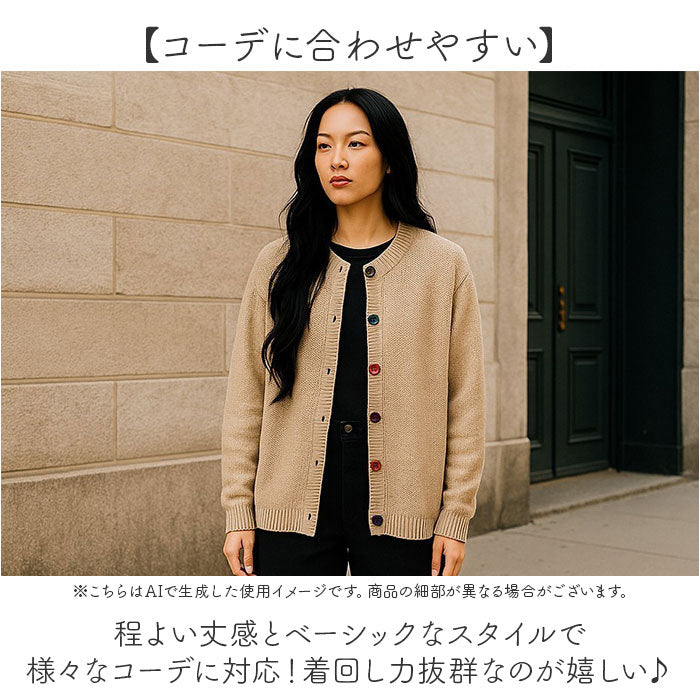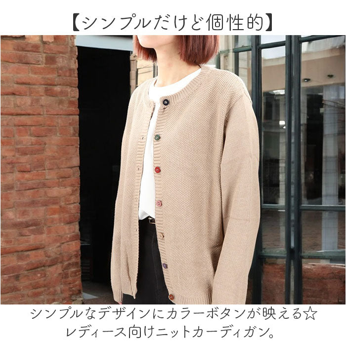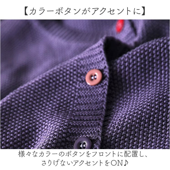 ・シンプルなデザインにカラーボタンが映える☆レディース向けニットカーディガン。