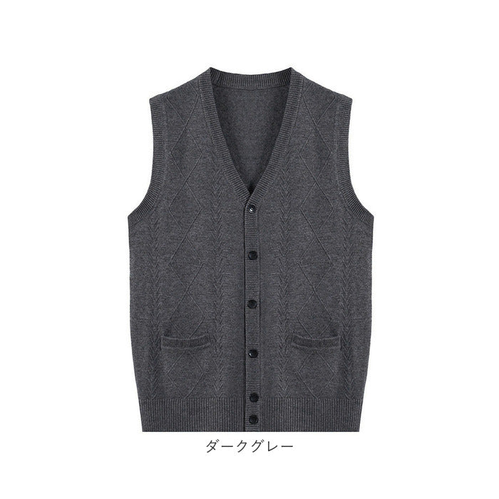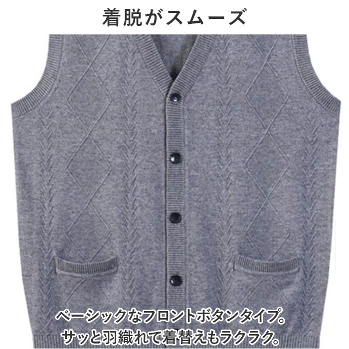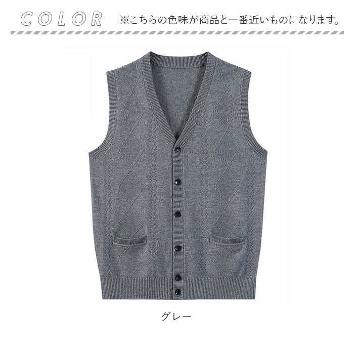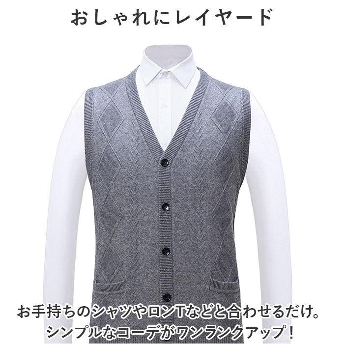 ニットベスト 前開 メンズ 通販 チョッキ ジレ トップス 防寒 保温 Vネック ボタン ウール 春 秋 冬 ポケット付き シンプル 通勤 通学 制服 学生 ビジネス フォーマル カジュアル 重ね着