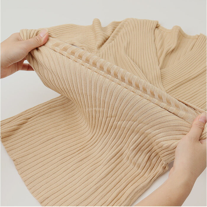 ・リブ編みのニットが縦のラインを強調してすっきりとしたシルエットを実現◎