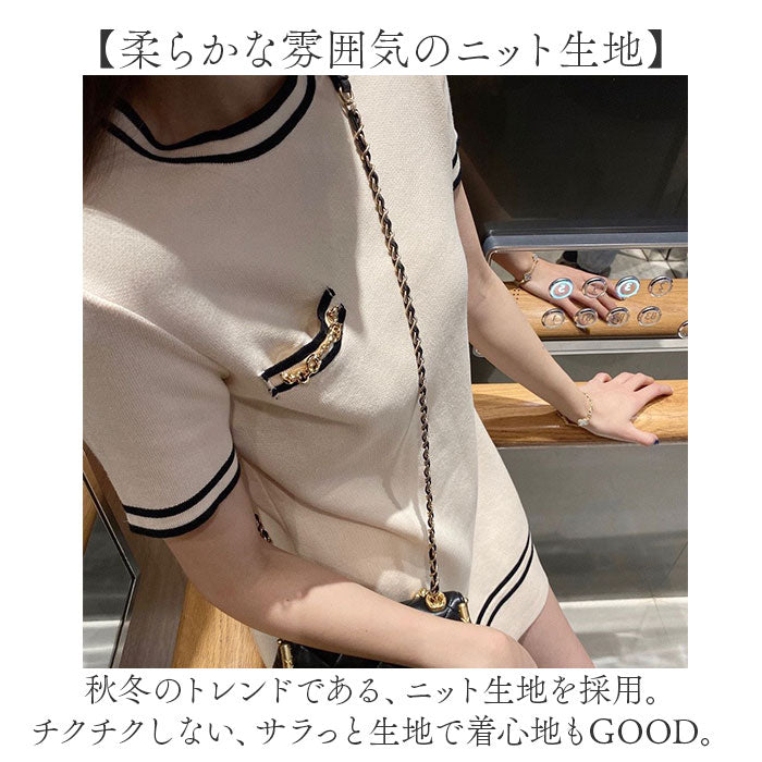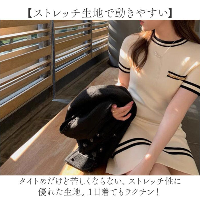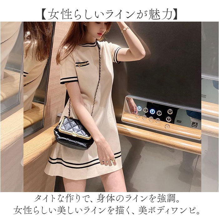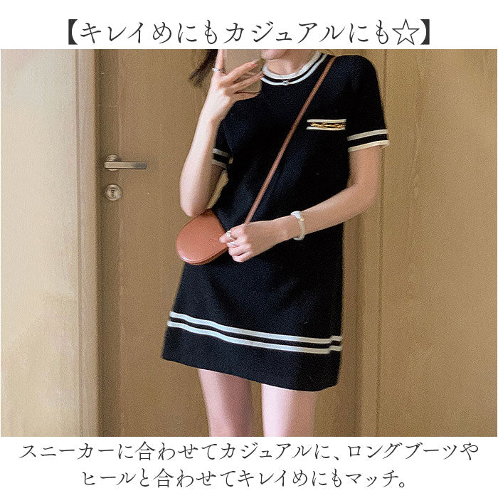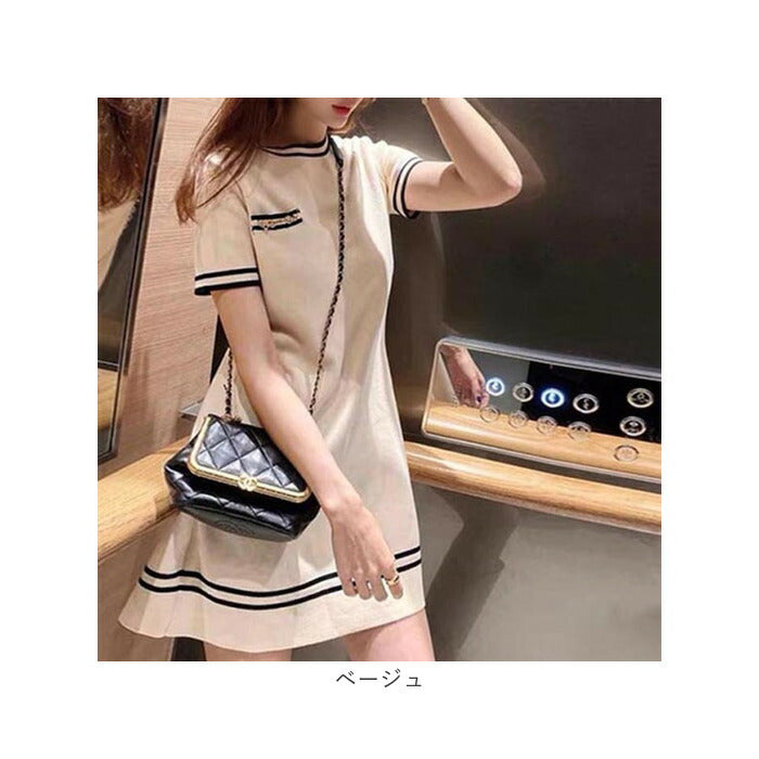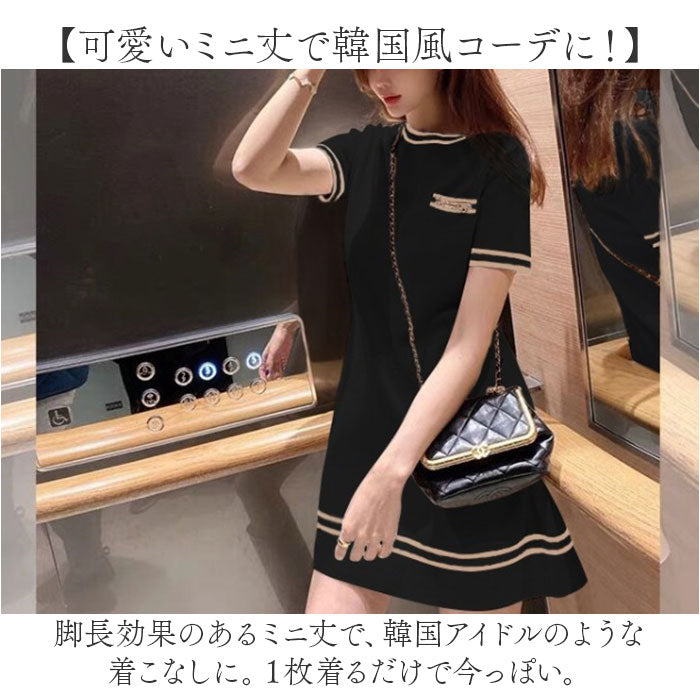 ニットワンピース 半袖 通販 ミニワンピ ミニ ワンピ ワンピース ニットワンピ Aライン クルーネック 半袖ワンピース きれいめ フェミニン おしゃれ オシャレ 大人 上品 シンプル