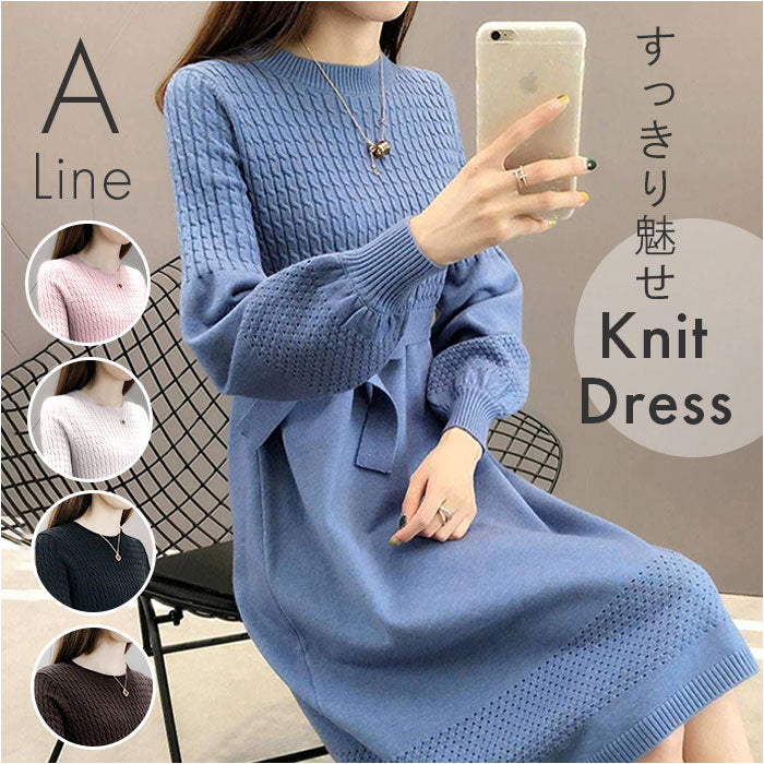 ニットワンピース 長袖 Aライン