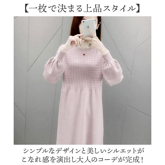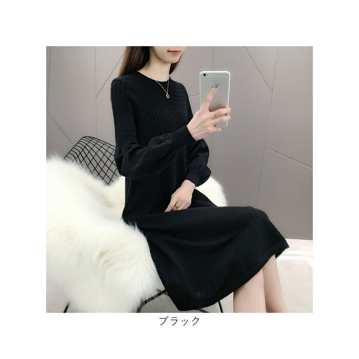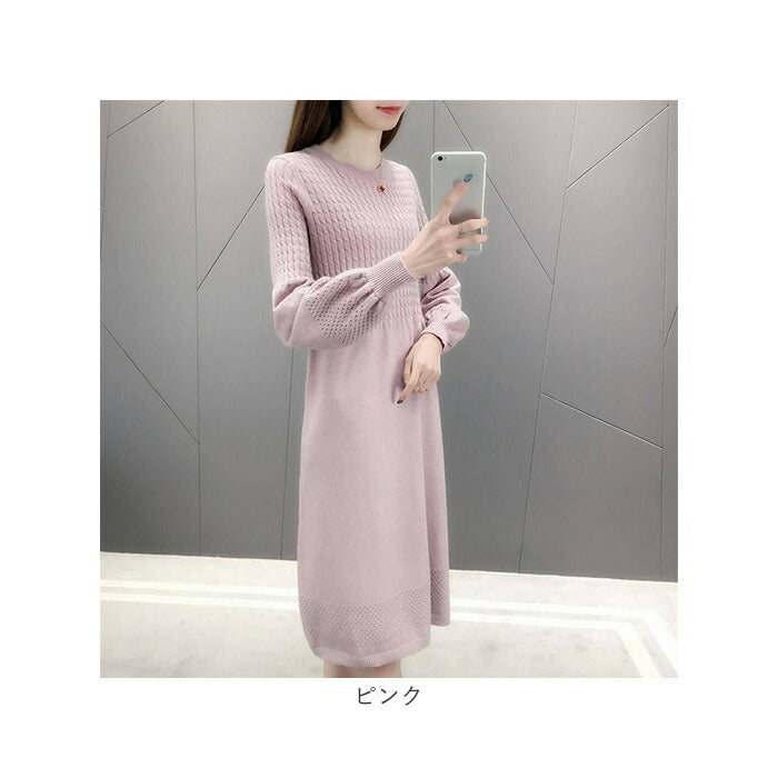 ニットワンピース 秋冬 通販 ワンピース レディース 長袖 ニット ニットワンピ きれいめ 上品 無地 シンプル 膝下丈 膝丈 ひざ下 ひざ丈 ゆったり おしゃれ オシャレ かわいい 可愛い