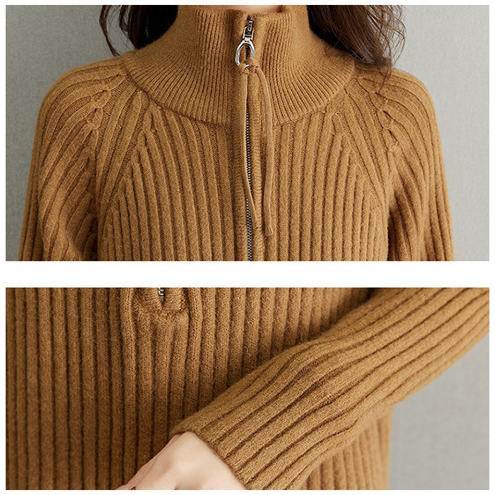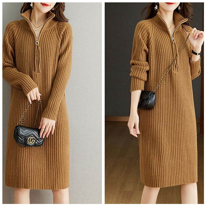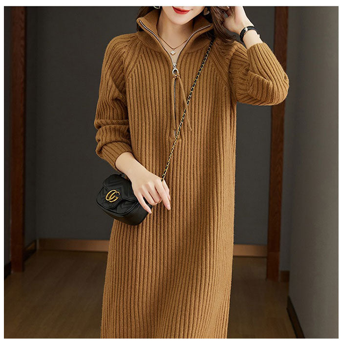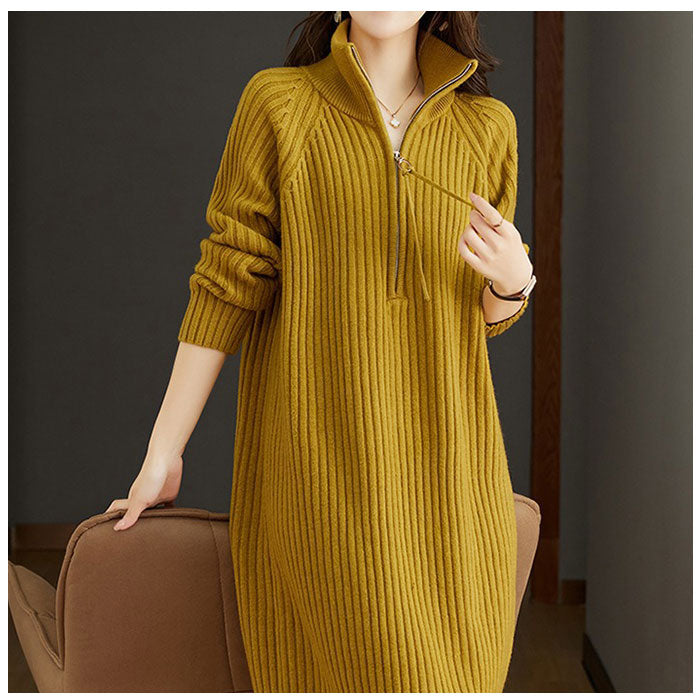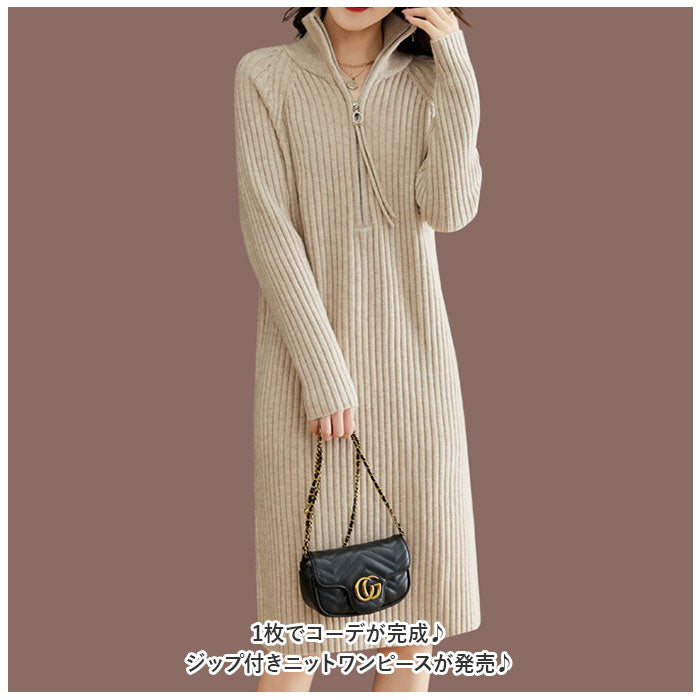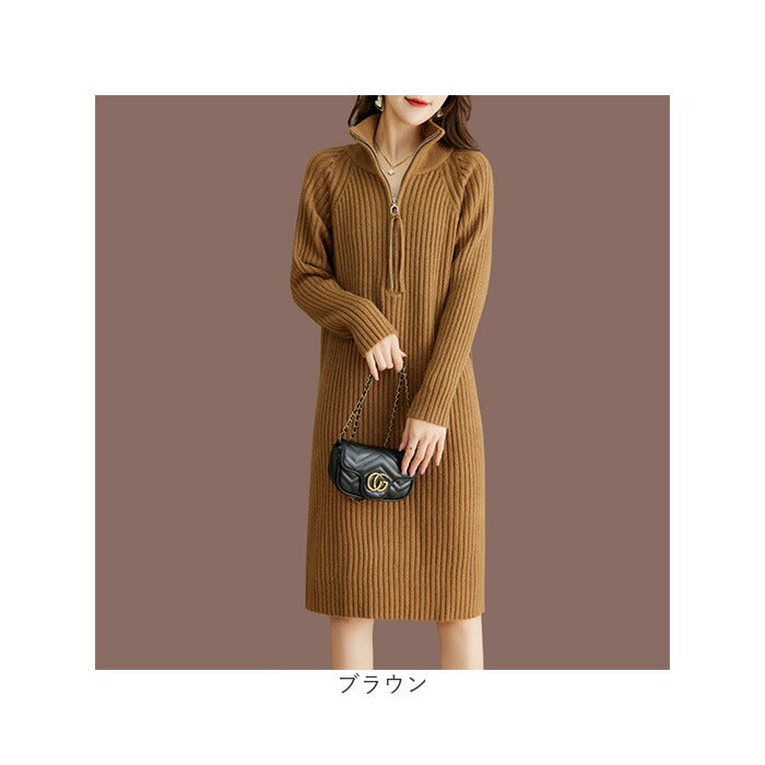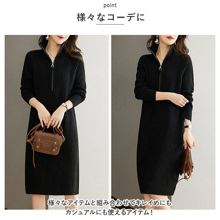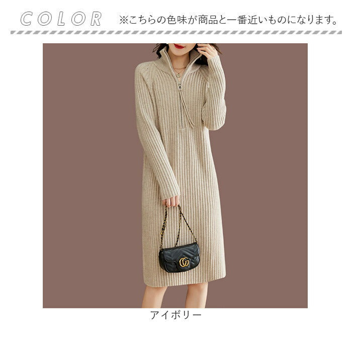 ニットワンピース 通販 リブワンピ ワンピース ニット ワンピ 長袖 膝丈 レディース 秋 冬 ハーフジップ シンプル 無地 洗える 通勤 通学 カジュアル きれいめ かわいい カワイイ