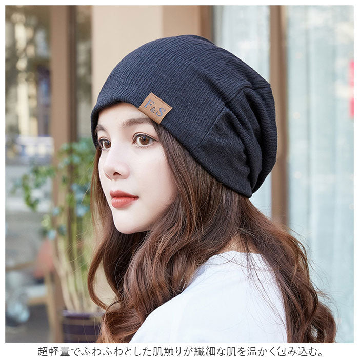 ・ふんわり柔らかな被り心地と伸縮性で男女兼用で使えるニット帽。