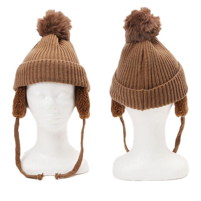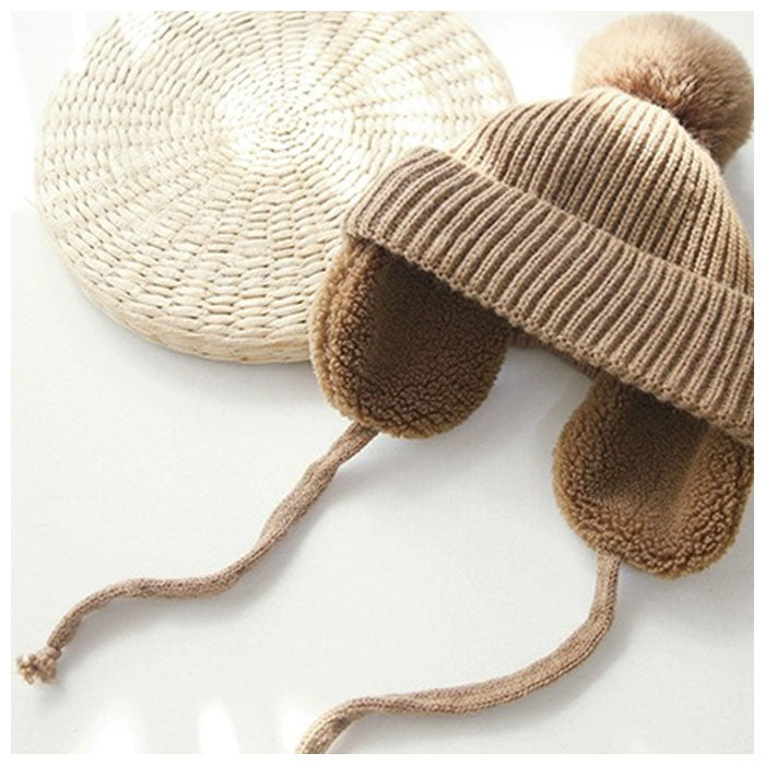 ・もこもこ素材でできた耳当ても縫い付けており、頭と耳を冷気からしっかりカバー。