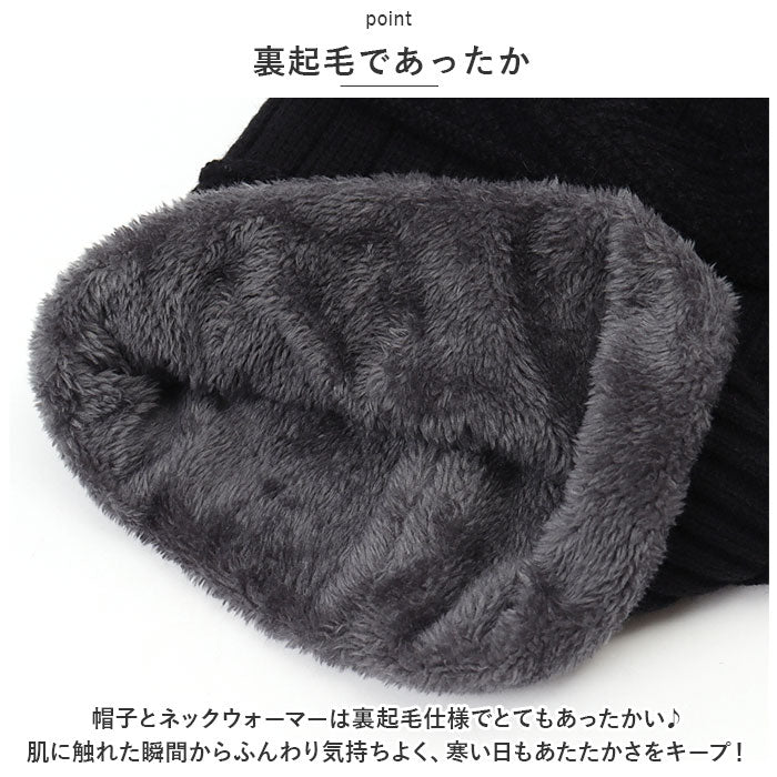 ・帽子とネックウォーマーは裏起毛仕様でとてもあったかい♪肌に触れた瞬間からふんわり気持ちよく、寒い日もあたたかさをキープ!