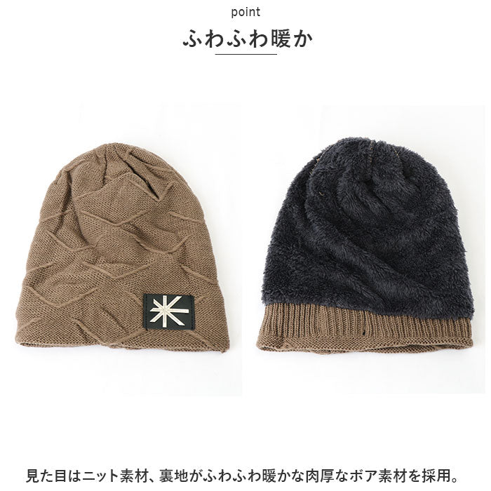 ・見た目はニット素材、裏地がふわふわ暖かな肉厚なボア素材を採用。