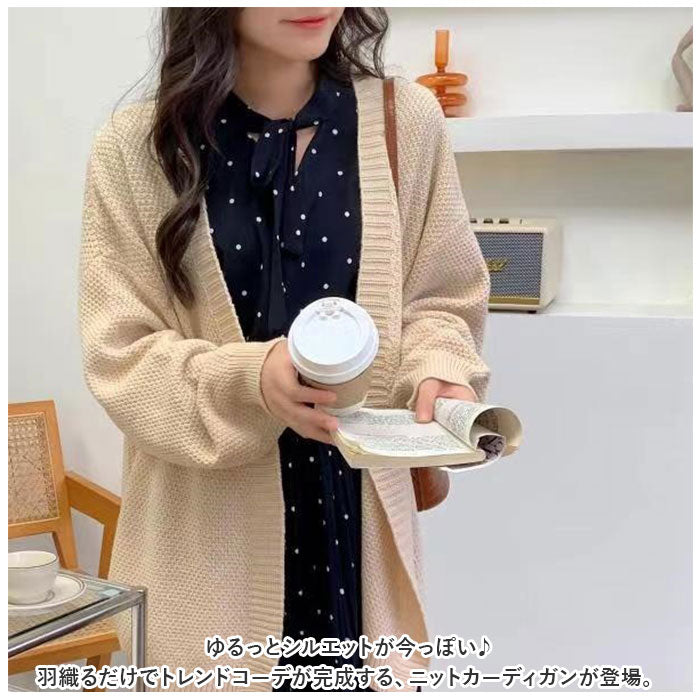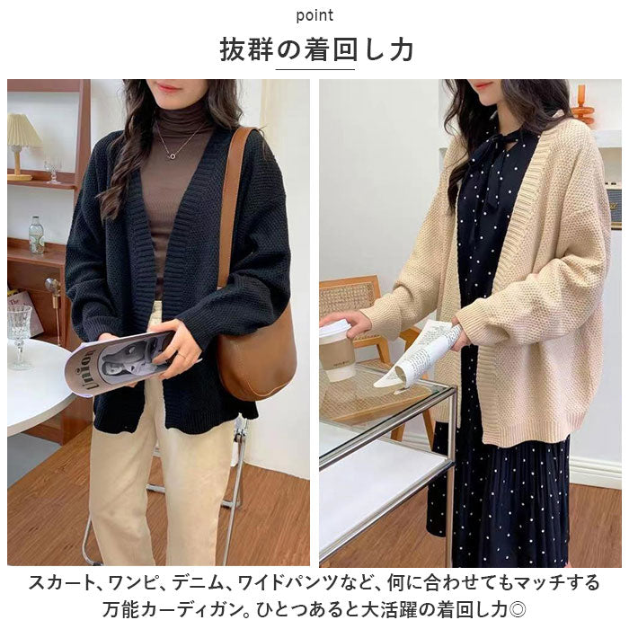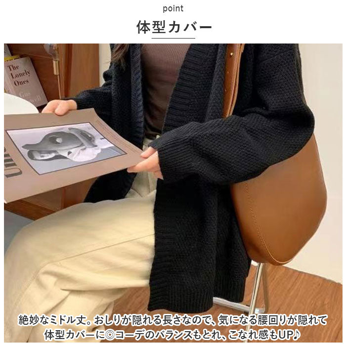 ニット カーディガン 通販 ニットカーディガン 羽織り 羽織 長袖 Vネック ミドル丈 ミドル ゆったり 体型カバー カジュアル レディース 婦人服 アウター 通勤 通学 おしゃれ 防寒対策
