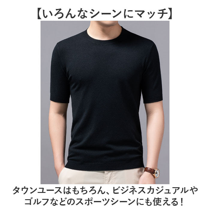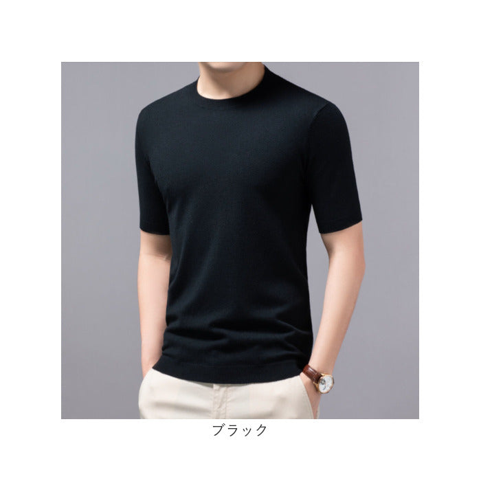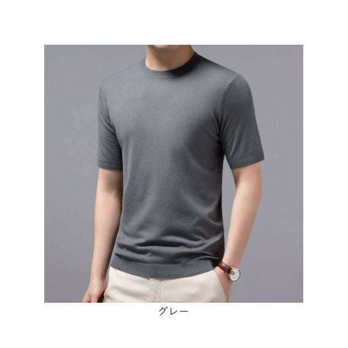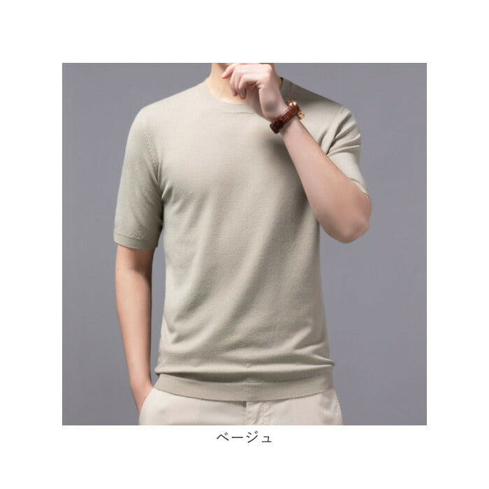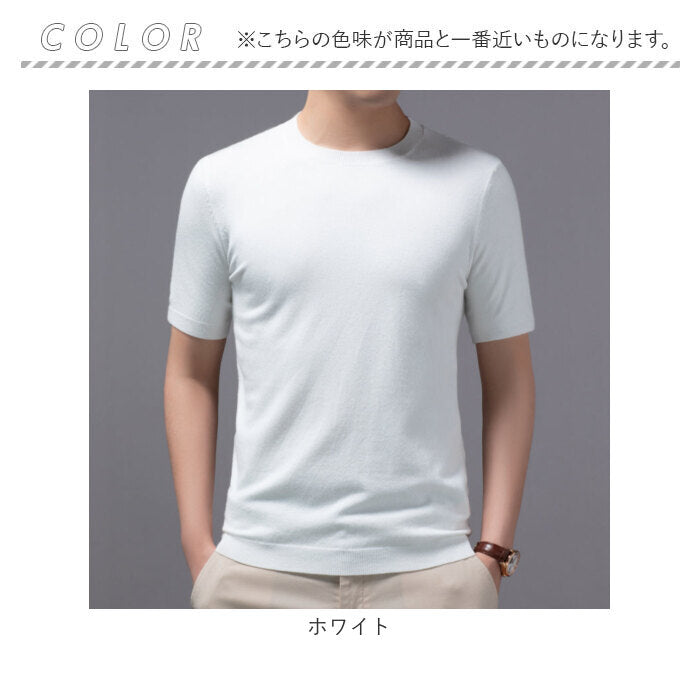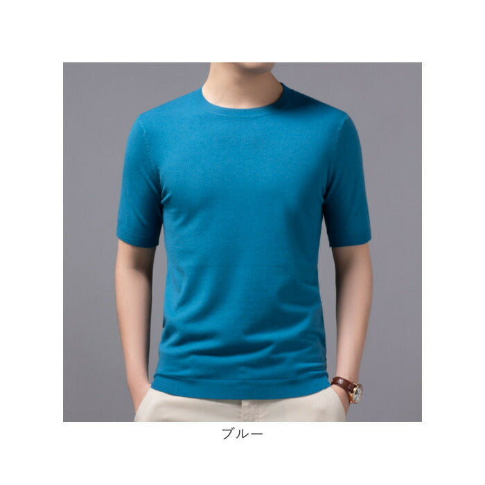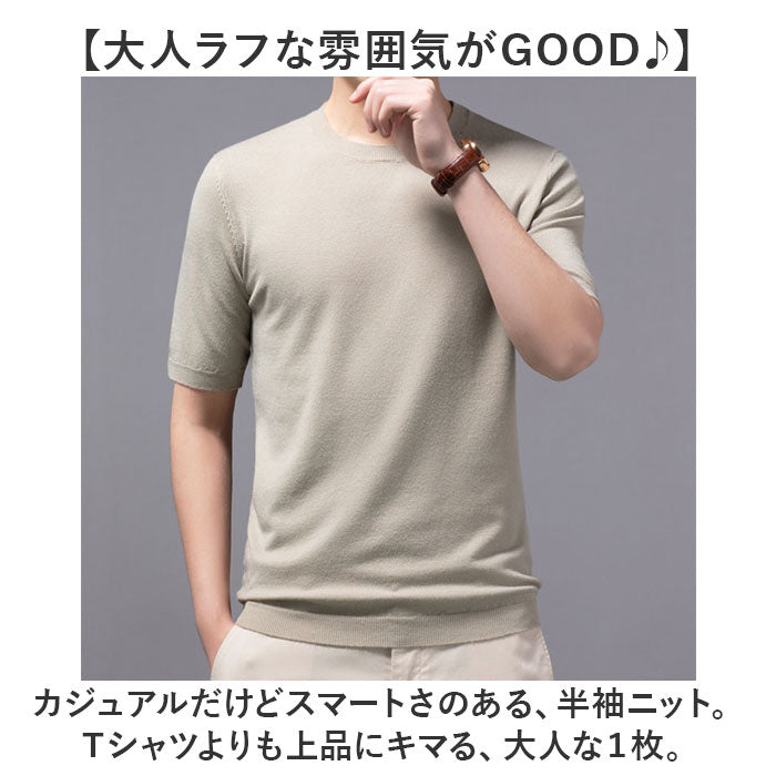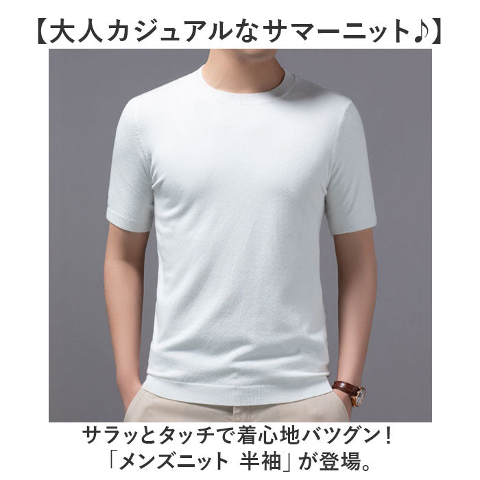 ニット メンズ 半袖 通販 サマーニット 半袖ニット セーター おしゃれ 無地 トップス スリム カジュアル オシャレ きれいめ クルーネック 春 夏 秋 カットソー 半そで ニットセーター