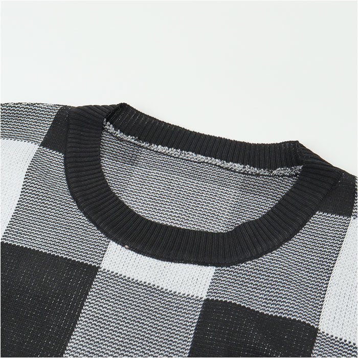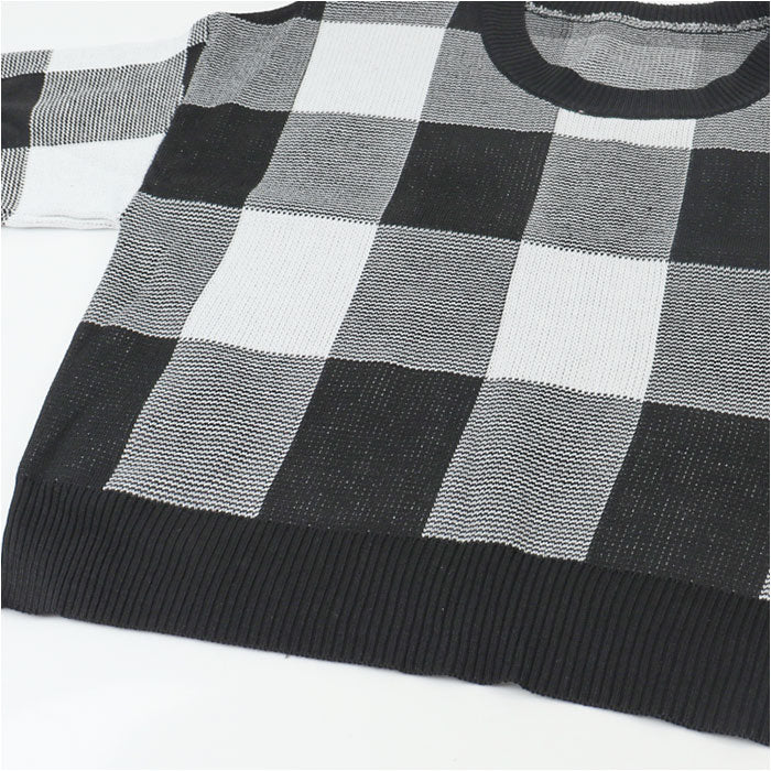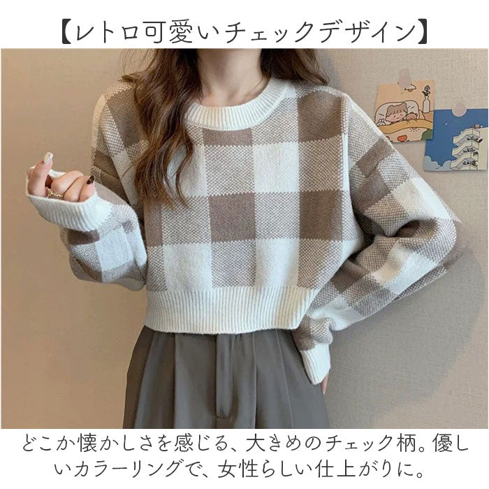 ニット レディース かわいい 通販 セーター ショート丈 長袖 チェック柄 ギンガムチェック おしゃれ 可愛い オシャレ カジュアル ゆったり 大きいサイズ オーバーサイズ 春 秋 冬 女性