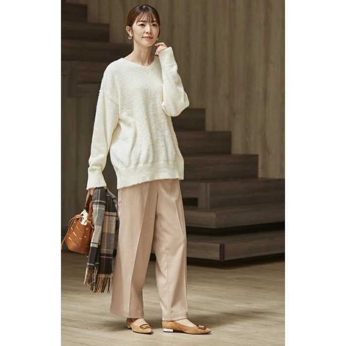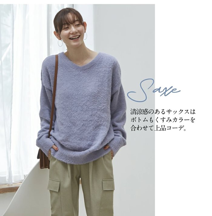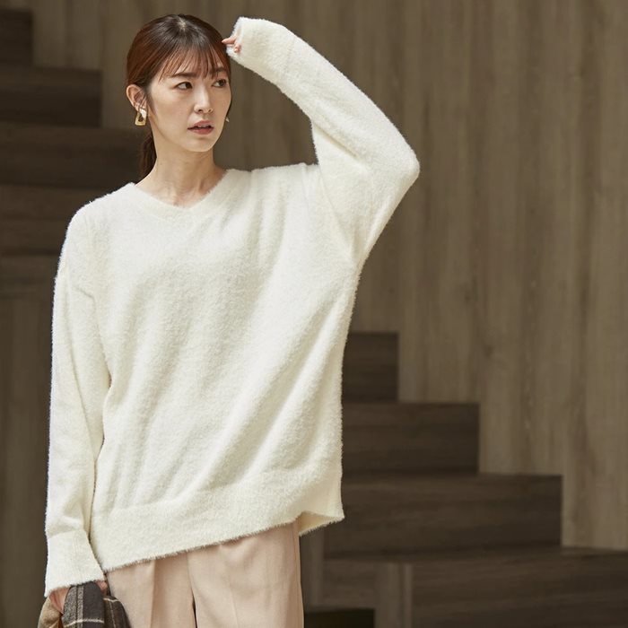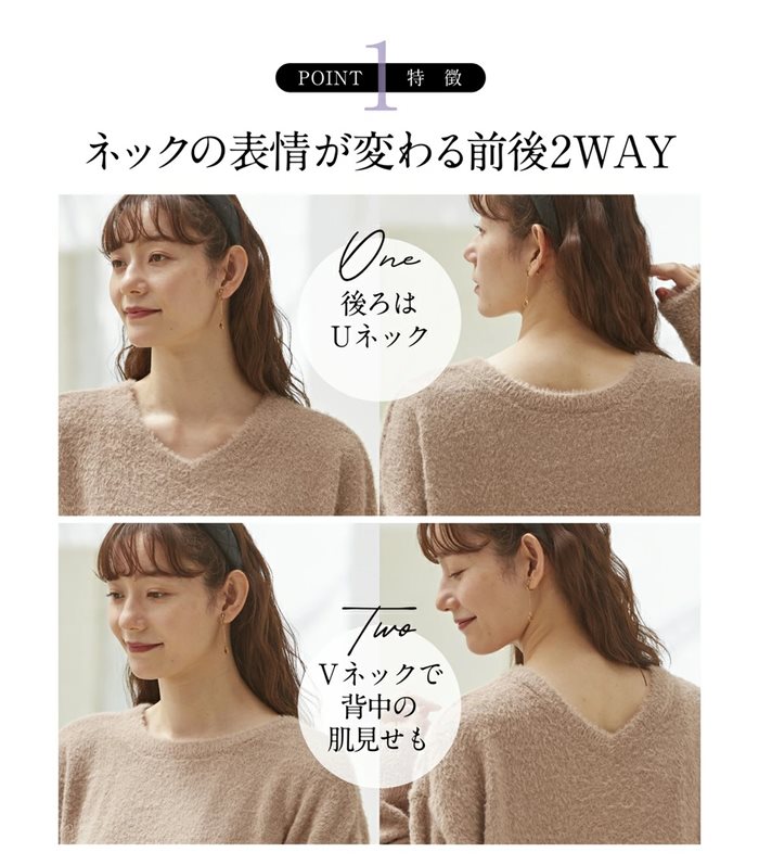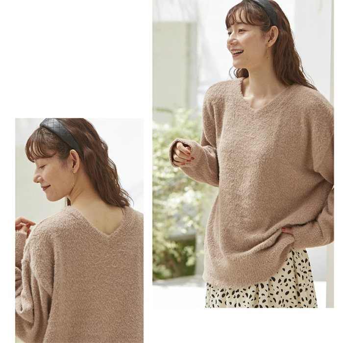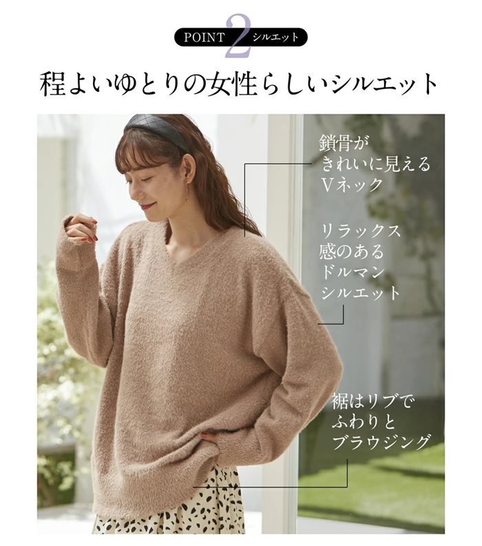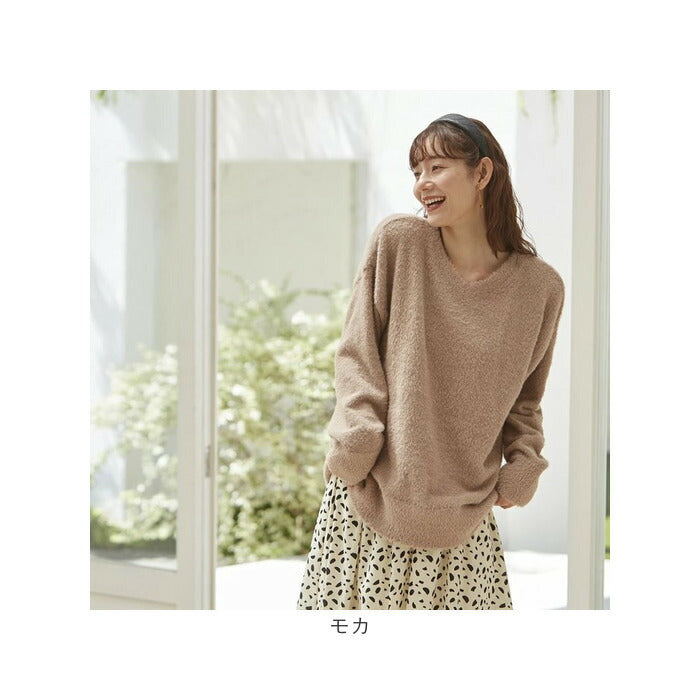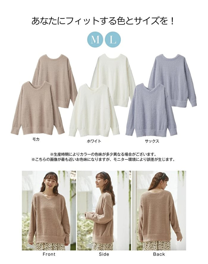 ニット レディース きれいめ 通販 セーター Vネックセーター プルオーバー 長袖 前後2WAYモヘアニット ゆったり 体型カバー 無地 おしゃれ シンプル 女性 大人かわいい カジュアル