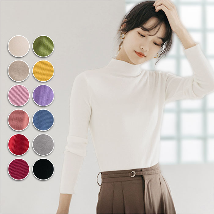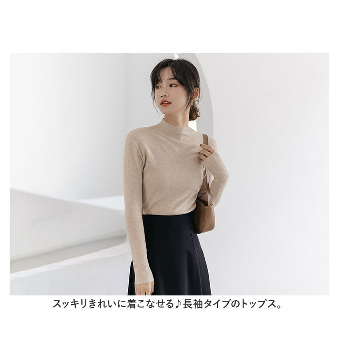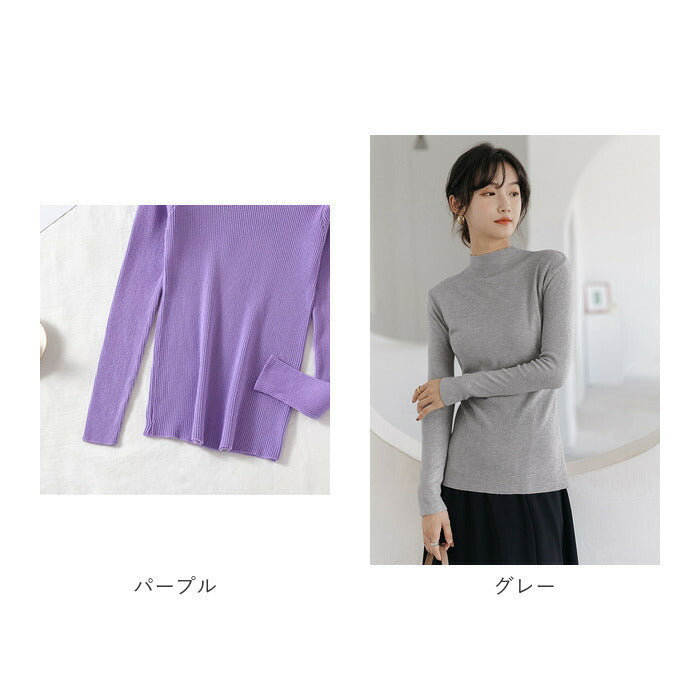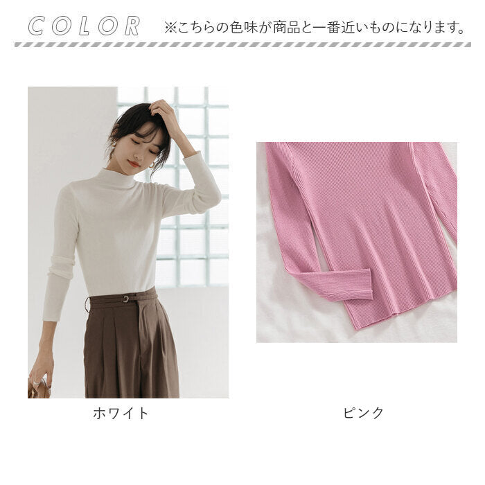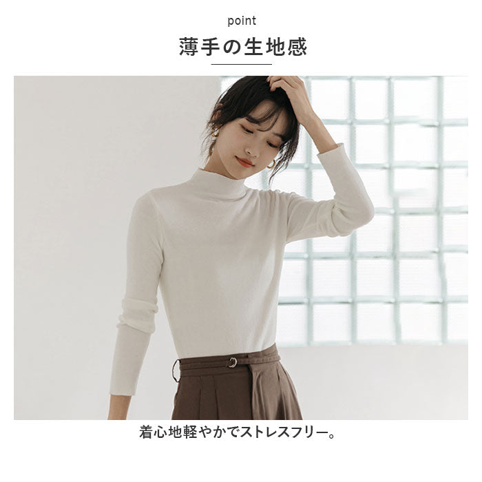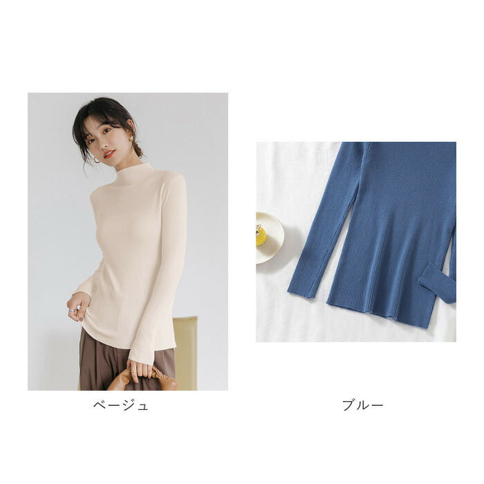 ニット レディース 長袖 ハーフタートルネック 通販 セーター タイト スリム フィット プルオーバー 秋 冬 薄手 上品 無地 シンプル きれいめ 着回し トップス おしゃれ