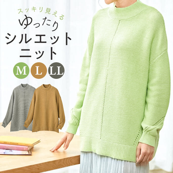 ニット レディース 長袖 通販 セーター トップス ハイネック 体型カバー ゆったりシルエットニット おしゃれ シンプル 大人 かわいい カジュアル ナチュラル オシャレ 無地 女性 ミセス