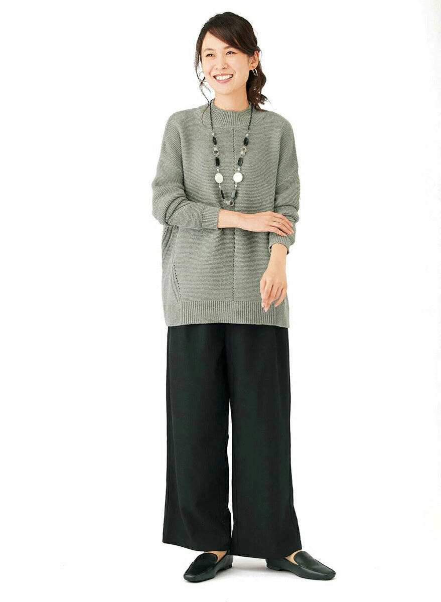 ・編地がしっかりしているので、トレーナーみたいにラクチンなのに、シャキッと上品なすっきり見えのシルエットが特徴のニットプルオーバーです。