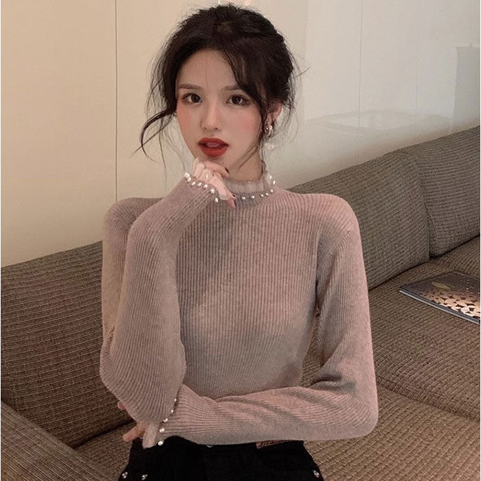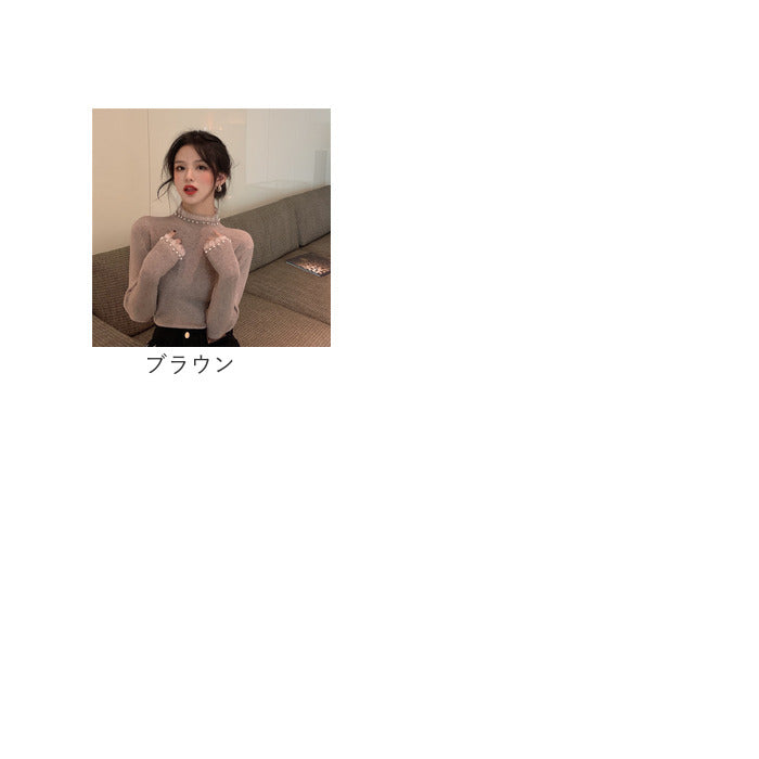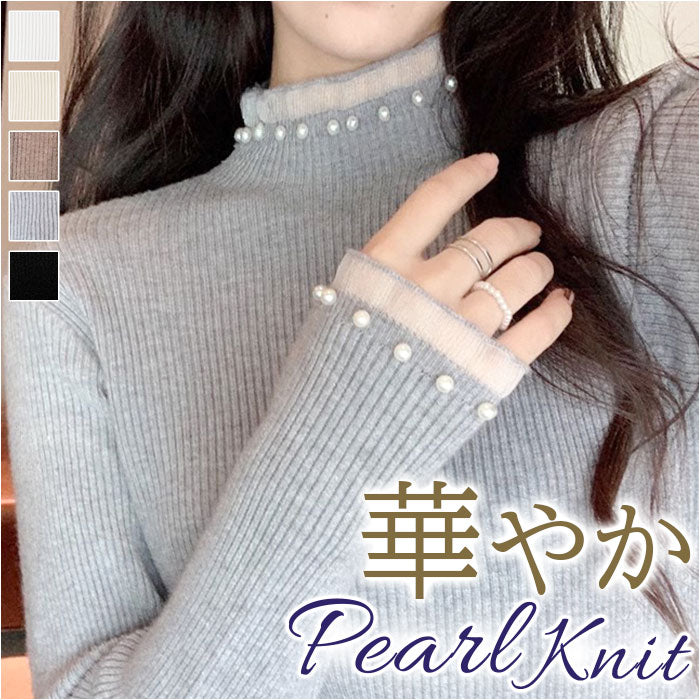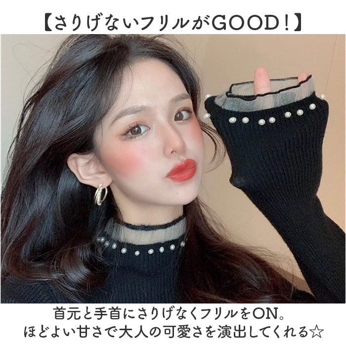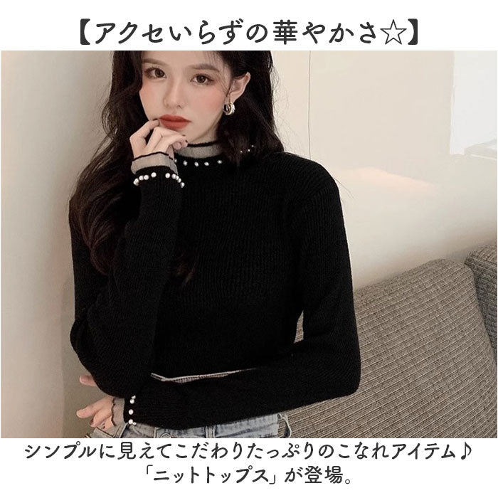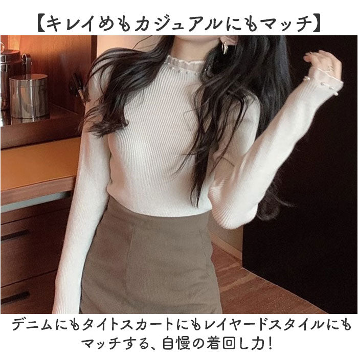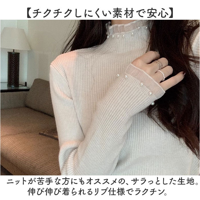ニット レディース 長袖 通販 セーター ニットセーター ニットトップス ハイネック インナー パールネック モックネック フリル パール 冬 秋冬 おしゃれ シンプル 無地 オシャレ